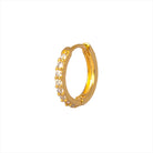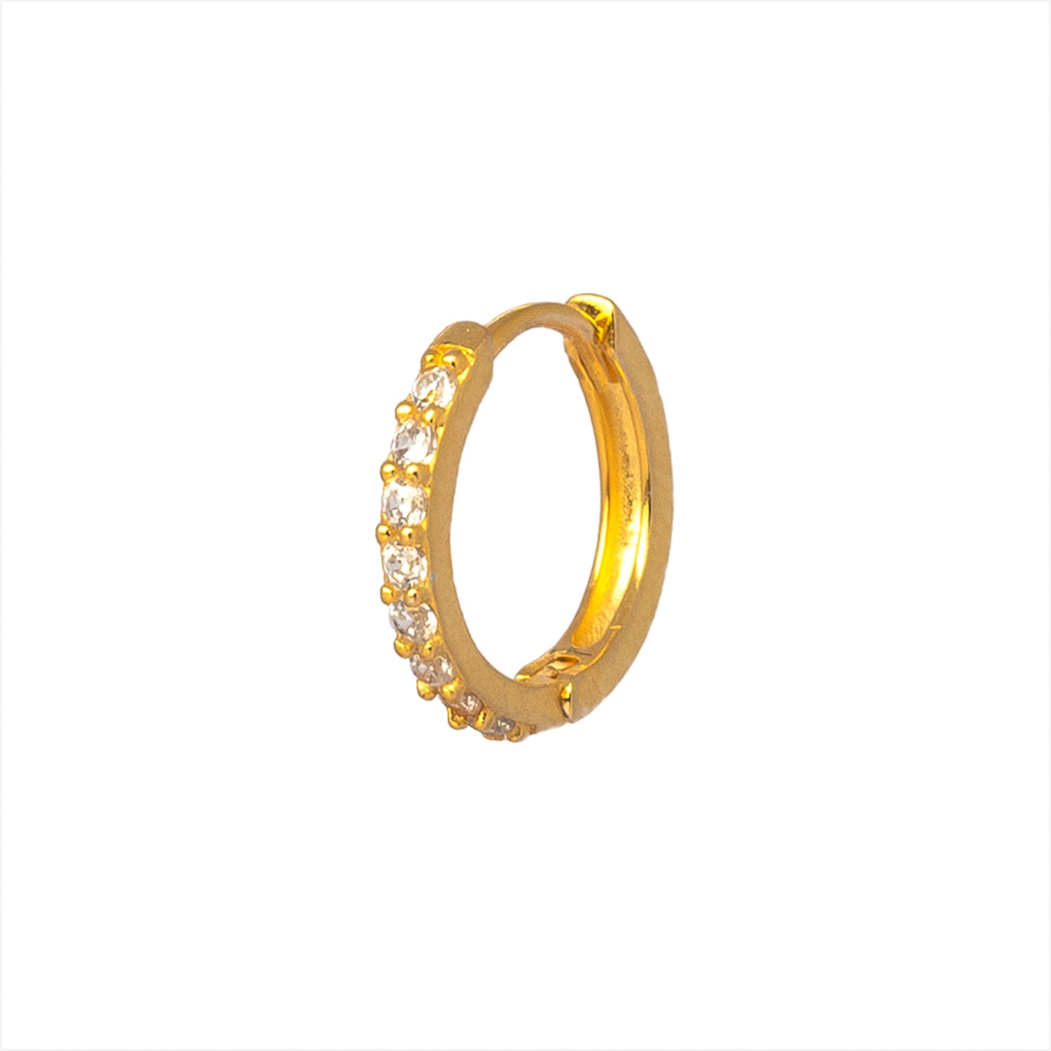 Set delicate, sparkling highlights with the 9 mm Crystal hoop earring in gold-plated 925 silver. Numerous cubic zirconia make every day a Diamond Day. The hoop is easy to handle thanks to the hinged fastener.