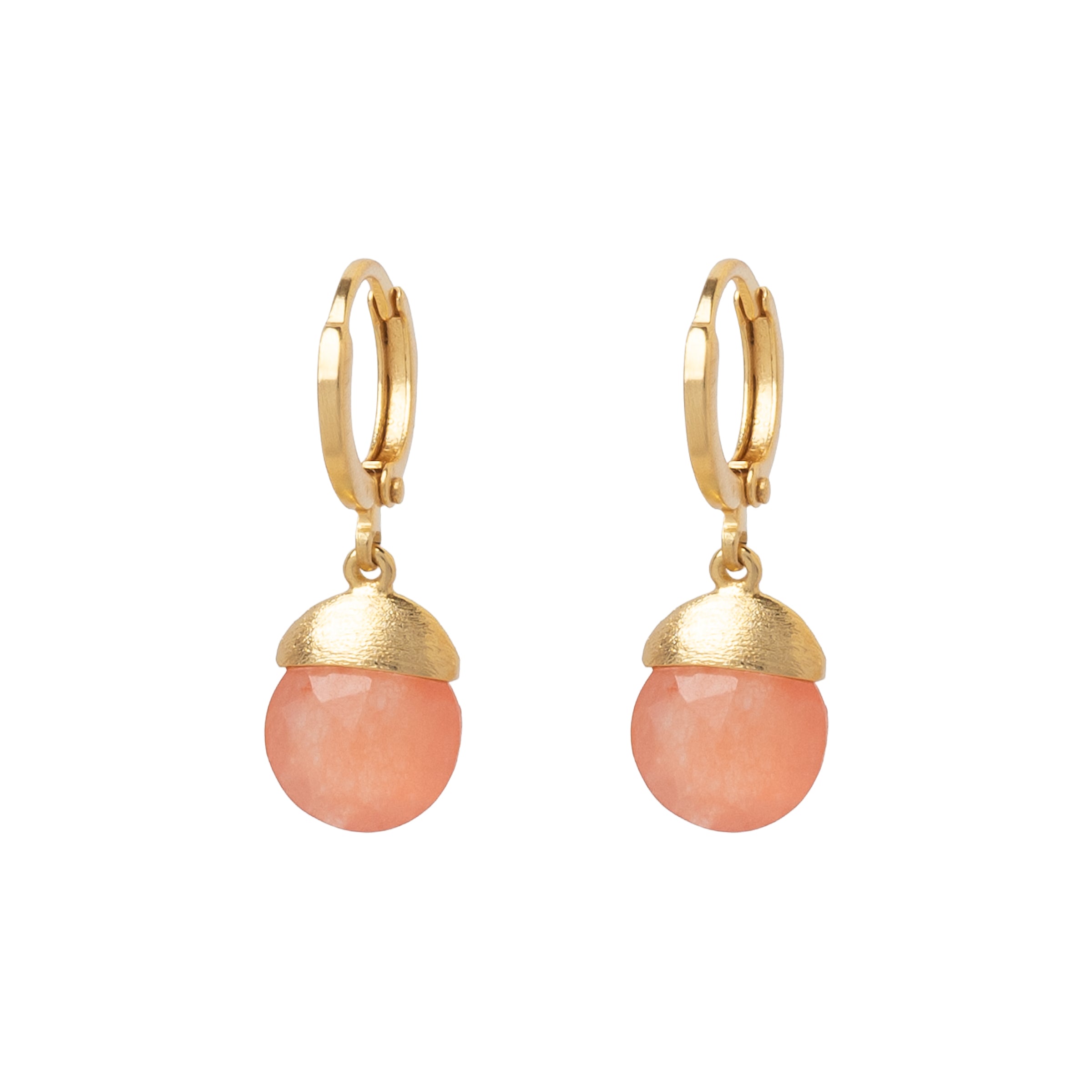 Creolen Enna mit oranger Jade und mattem Gold-Finish