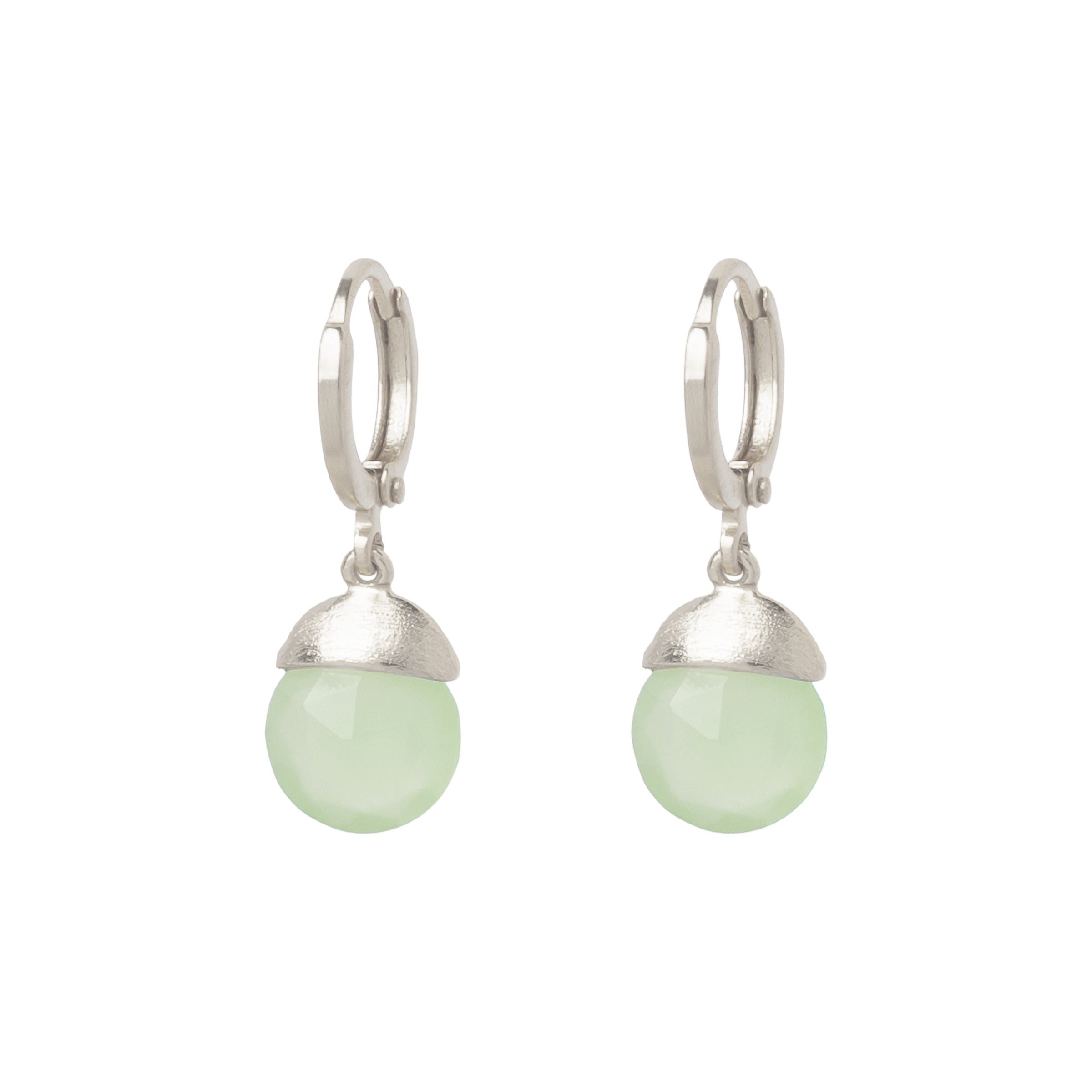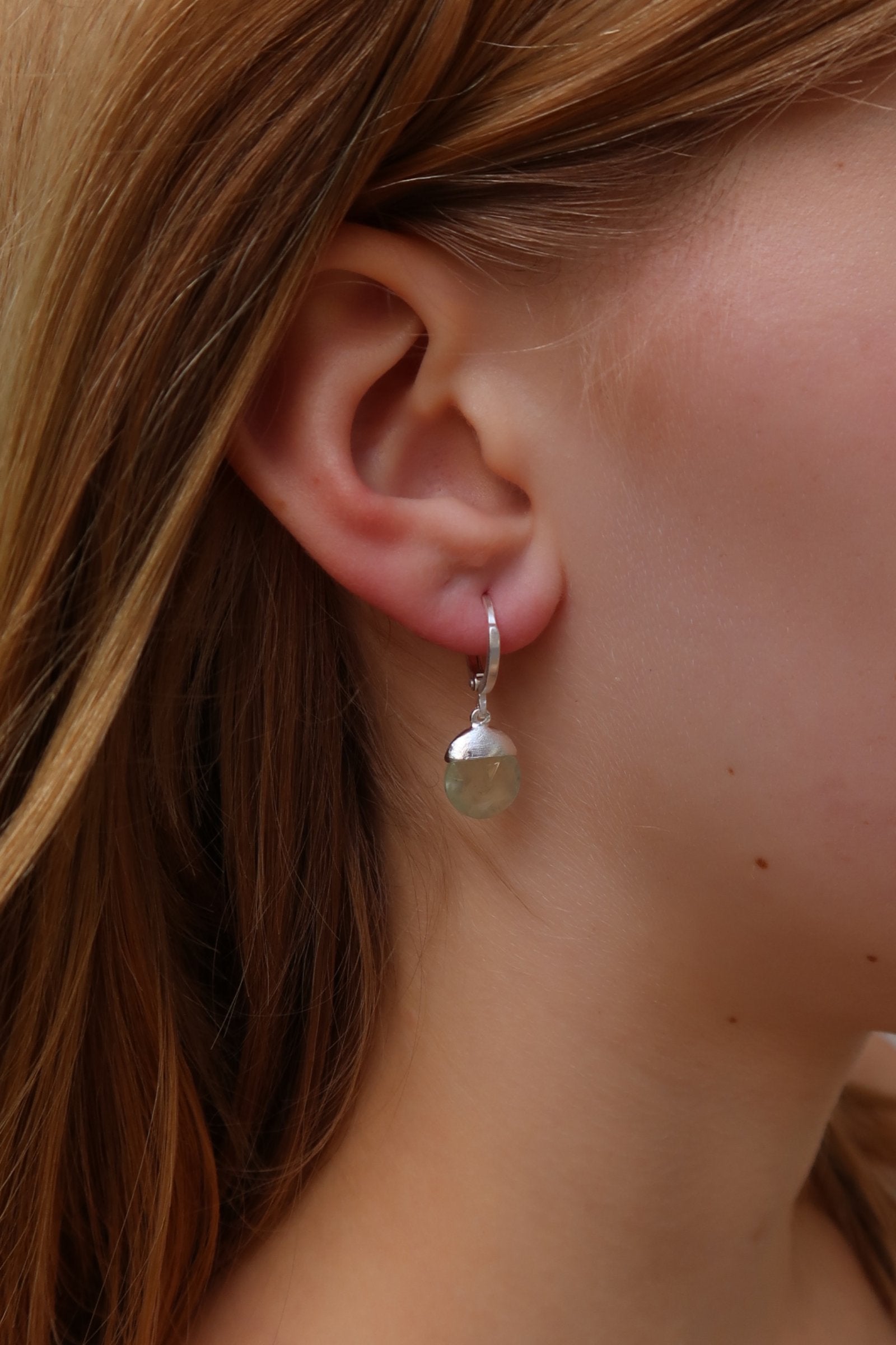 Tropfen-Creolen mit grünem Prehnit und mattem Silber-Finish