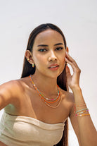 Our jewelry is high-quality gold-plated, silver-plated, or fashion jewelry. The metal components used are sourced from Germany and Italy and imported to Bali. Our gold plating on the carabiners, logo plate, and extension chain is made of 24-karat gold. However, this is a layer that can wear off depending on wear.