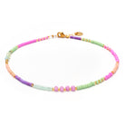 Our Corfu anklet is a beguiling melange of lilac, light pink, mint and blush rose. Purple glass crystals add elegant highlights. The Corfu series from our Greece Collection includes other anklets, bracelets and a necklace.