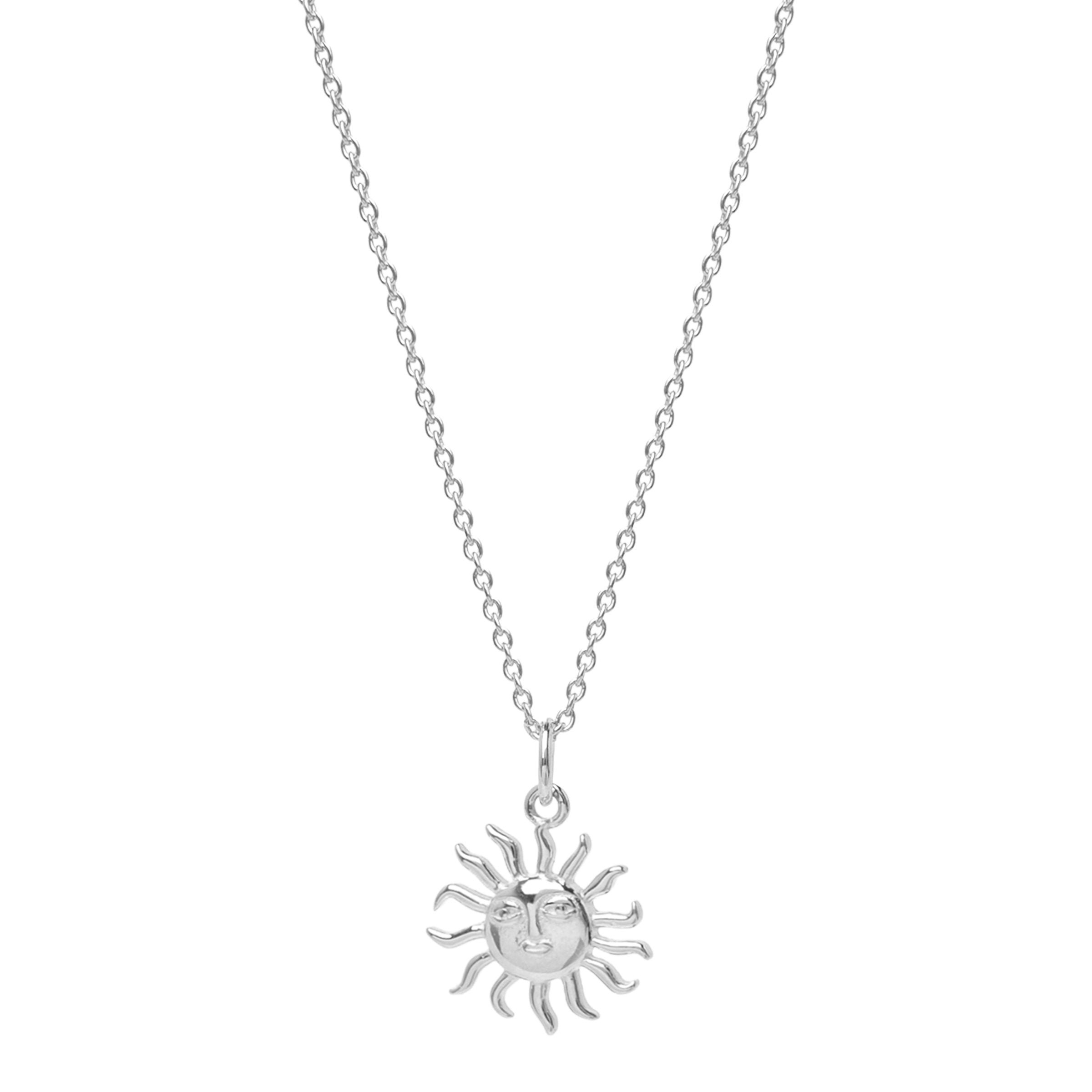 Gefertigt aus 925er Silber misst die Kette 45 cm und kommt bewusst ohne Verlängerung aus. Die Größe der Sonne beträgt 10 × 10 mm.