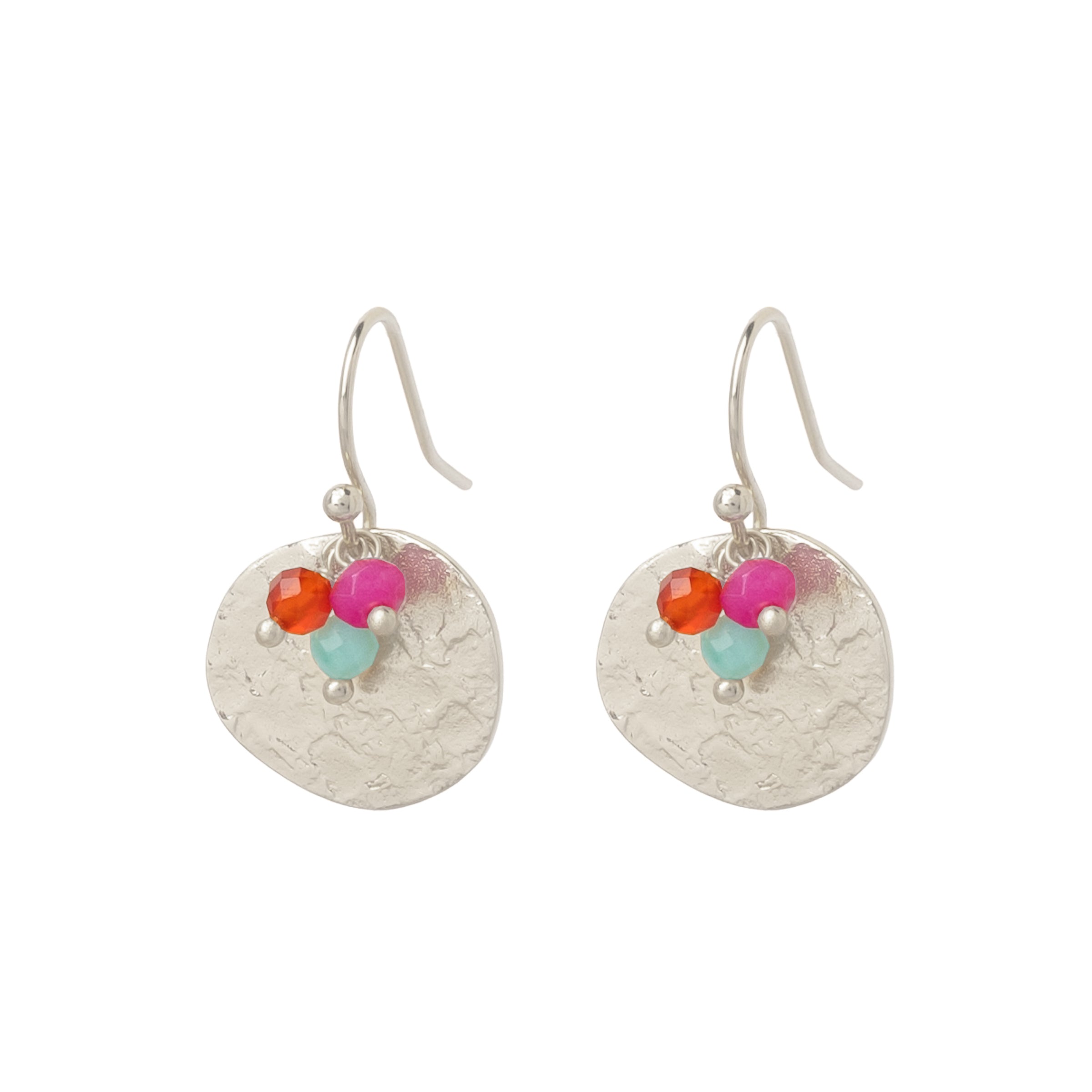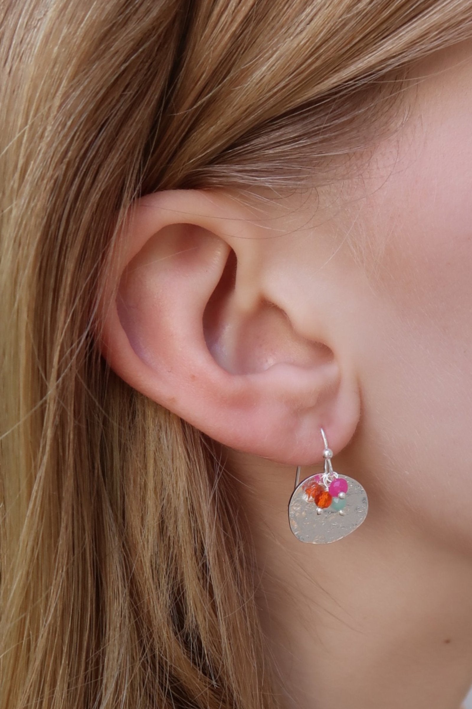 Ohrhänger Flying Coin – versilbertes Messing mit Natursteinen