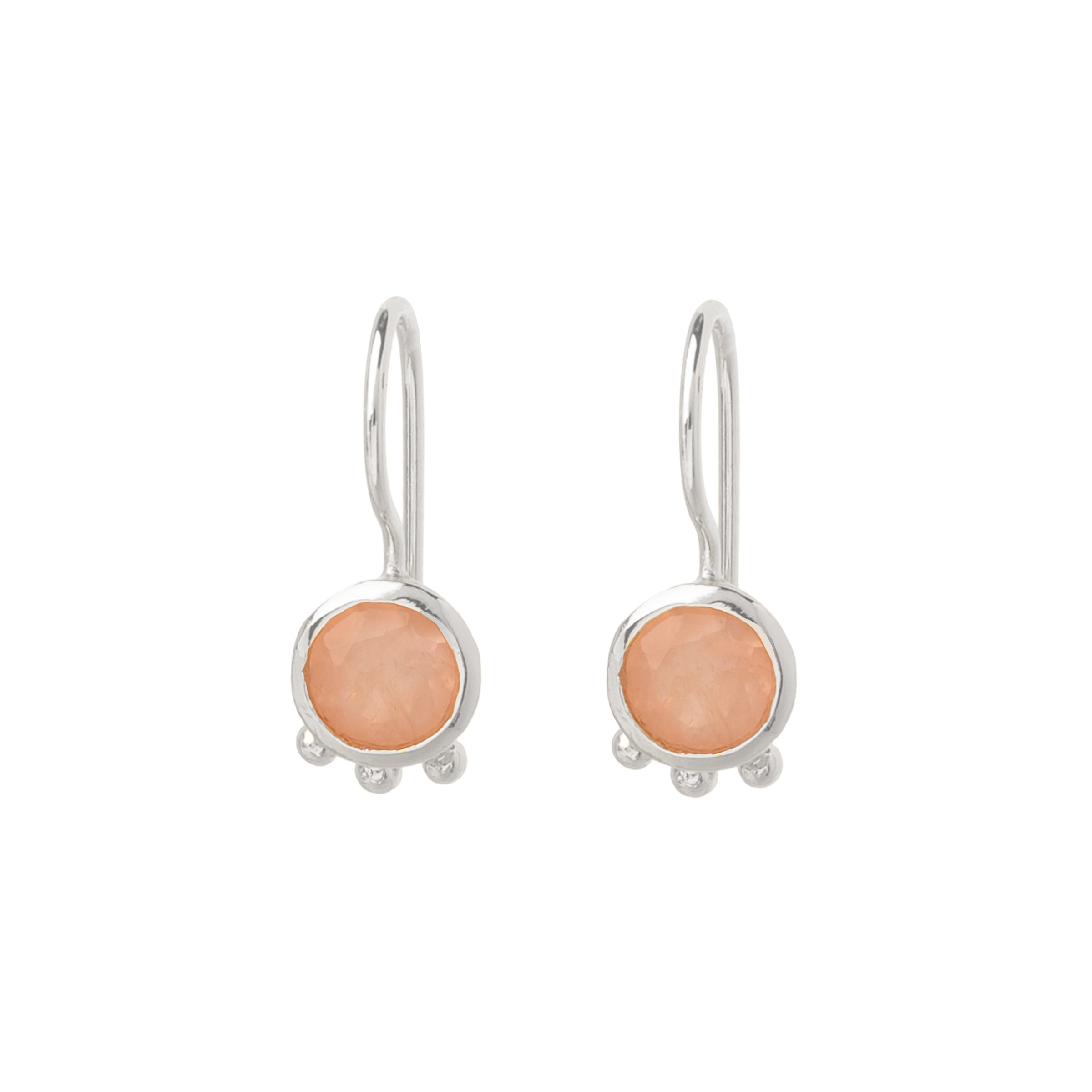 Get swept away by the beauty of our briolet drop earrings. The large aqua chalcedony is surrounded by a smaller drop of pink fuchsia onyx and a tiny orange carnelian bead.