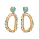 Numerous semiprecious green apatite stones frame the oval pendant of our Laguna earrings. This pendant hangs from a circular ear stud with turquoise-blue amazonite.