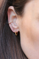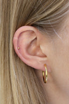 The Single Dot stud earring made from 925 silver is simple yet captivating. Only around 2 mm in size, the gold-plated ball is the icing on the cake of your adorned ear. In our Dot series you will also find the earring in Duo and Trio versions.