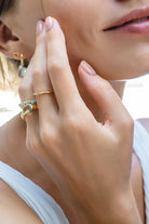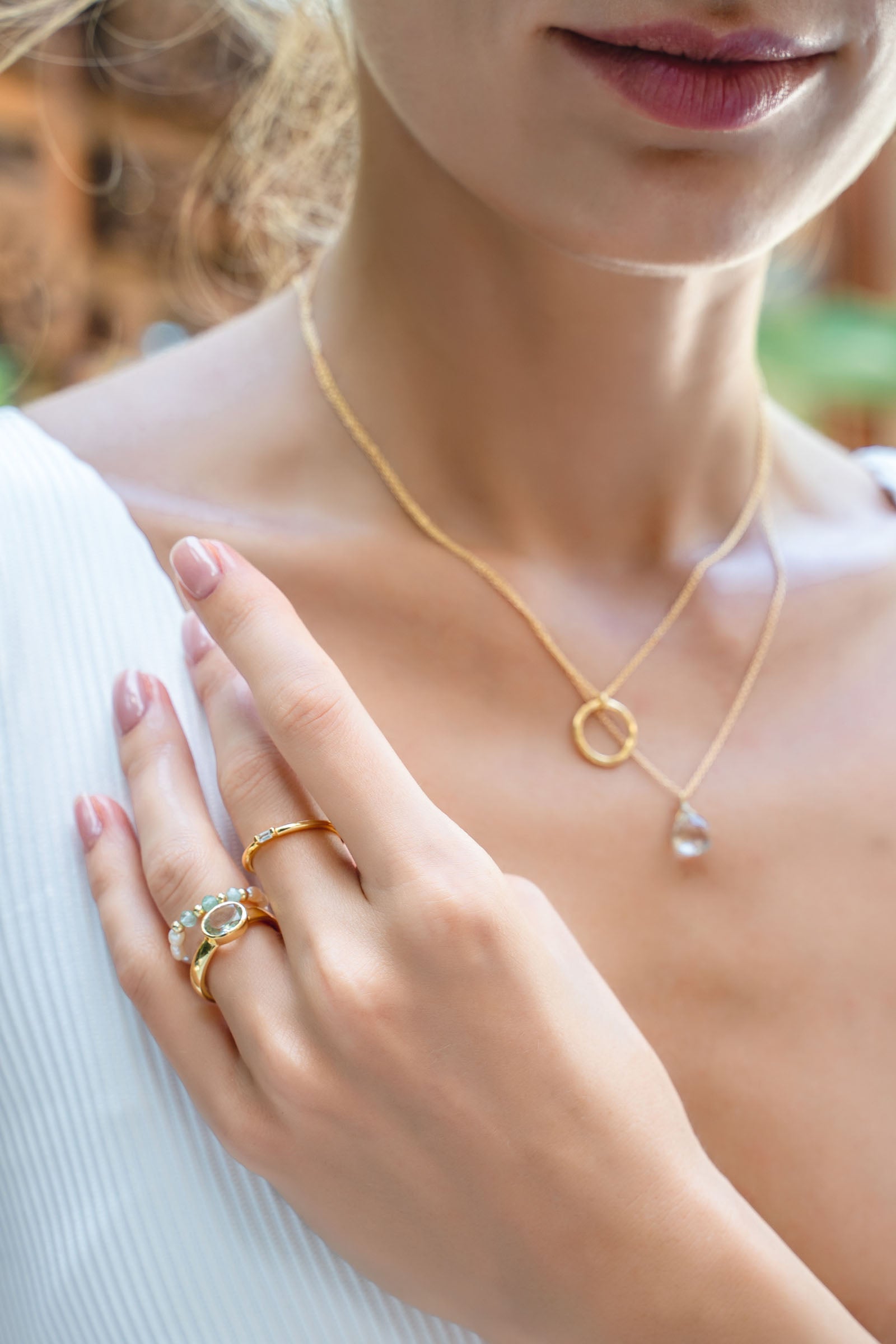 The green amethyst ring from our Gemstone series is a true statement piece. Set on a bold gold-plated 925 sterling silver band, the oval gemstone with its pale green color becomes the sparkling focal point. The stone is transparent and translucent.