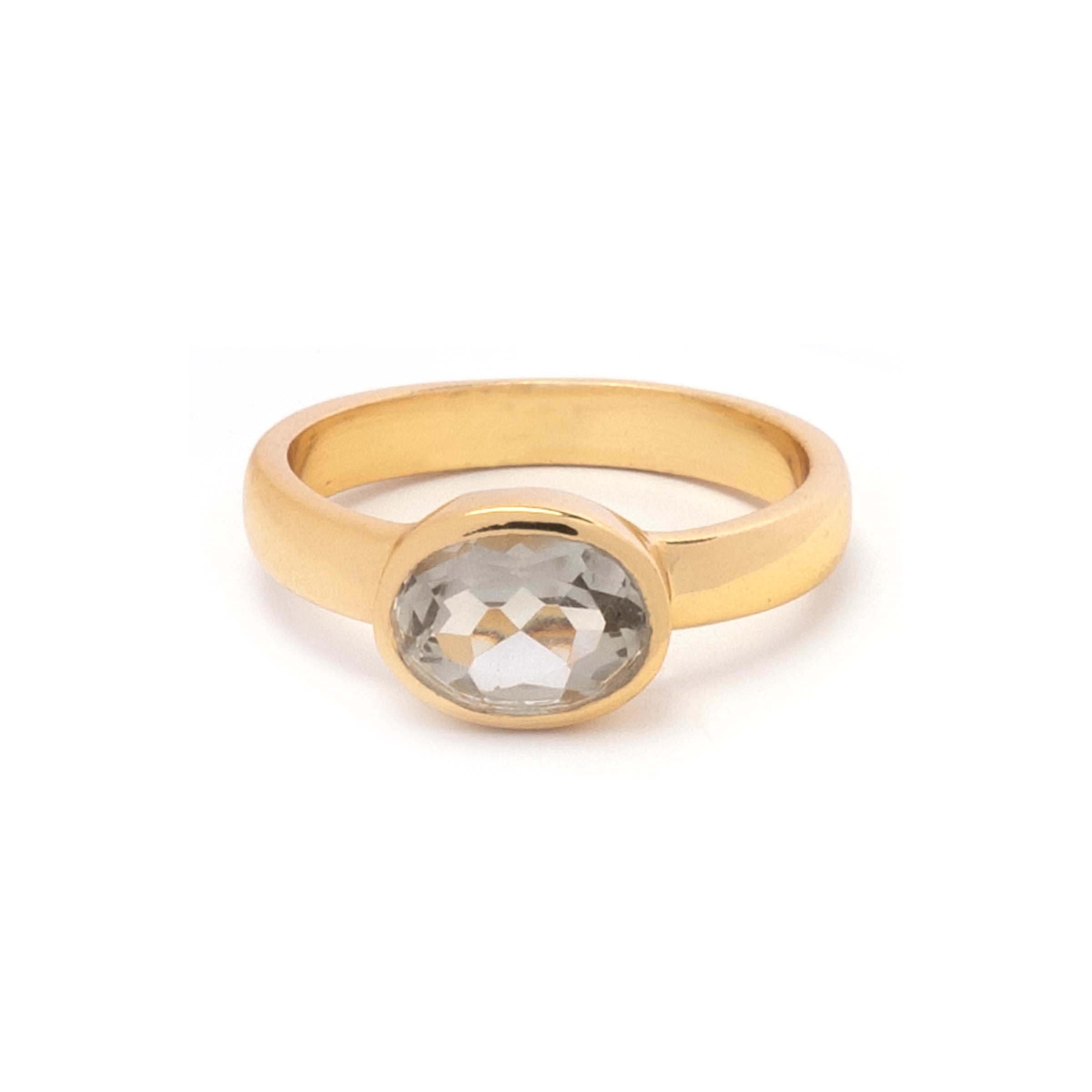 The ring is made of 925 silver and finished with an 18k gold layer. The band measures approximately 3 mm. The oval semiprecious stone measures 4 x 2.5 mm. These are natural stones, which vary in firmness and color and may therefore differ from the image.