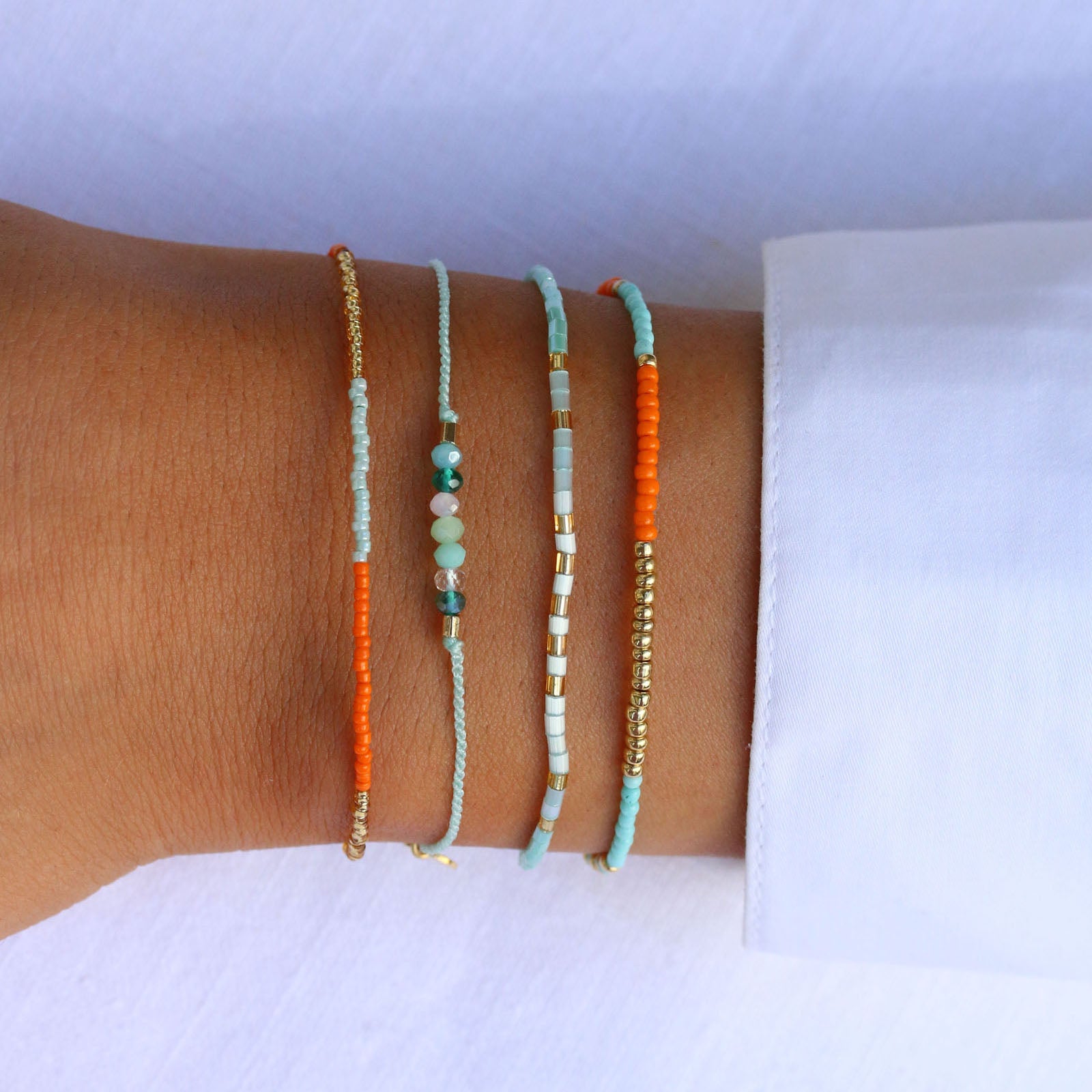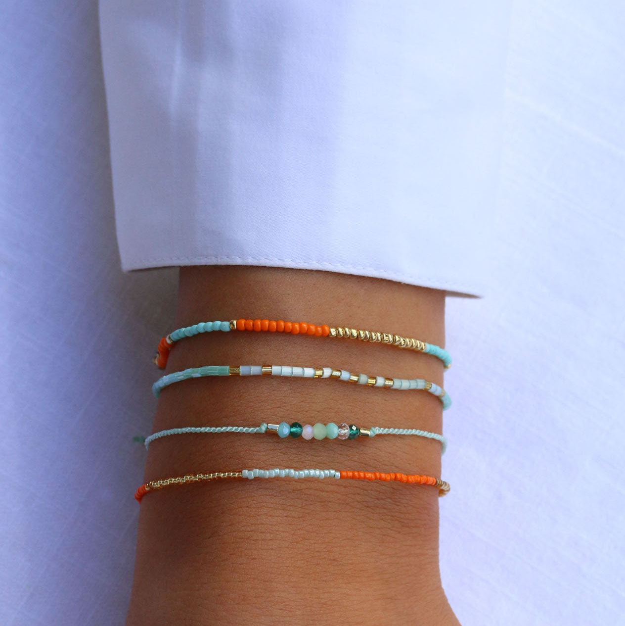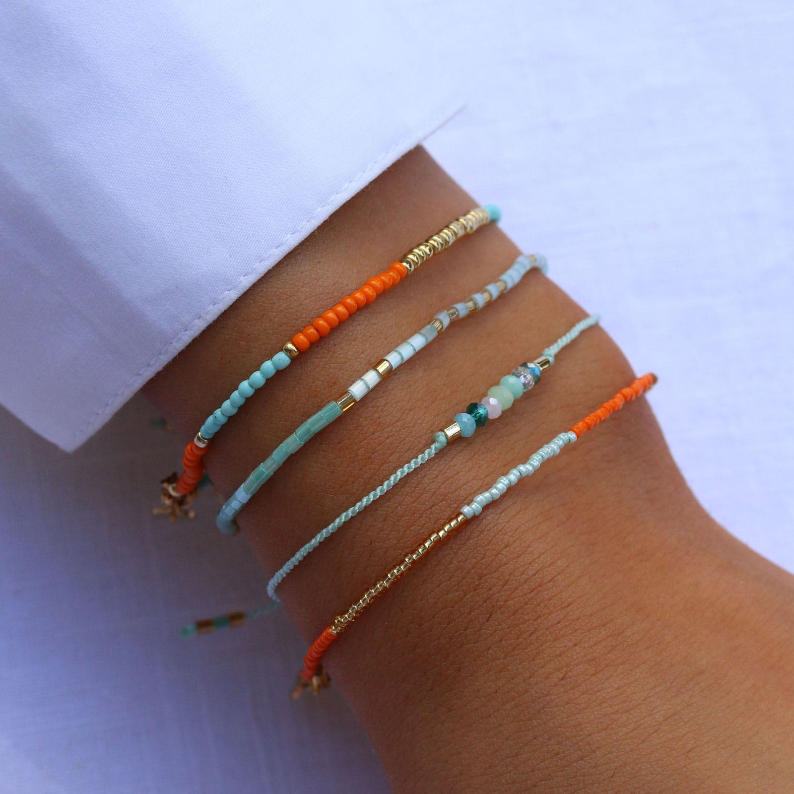 For our golden Block Mix 15 we mixed together beads in Fresh Mint, Vivid Orange and Gold in an interval of 1,5 to 2,5 cm. The same mix is available as Lolli Mix 4