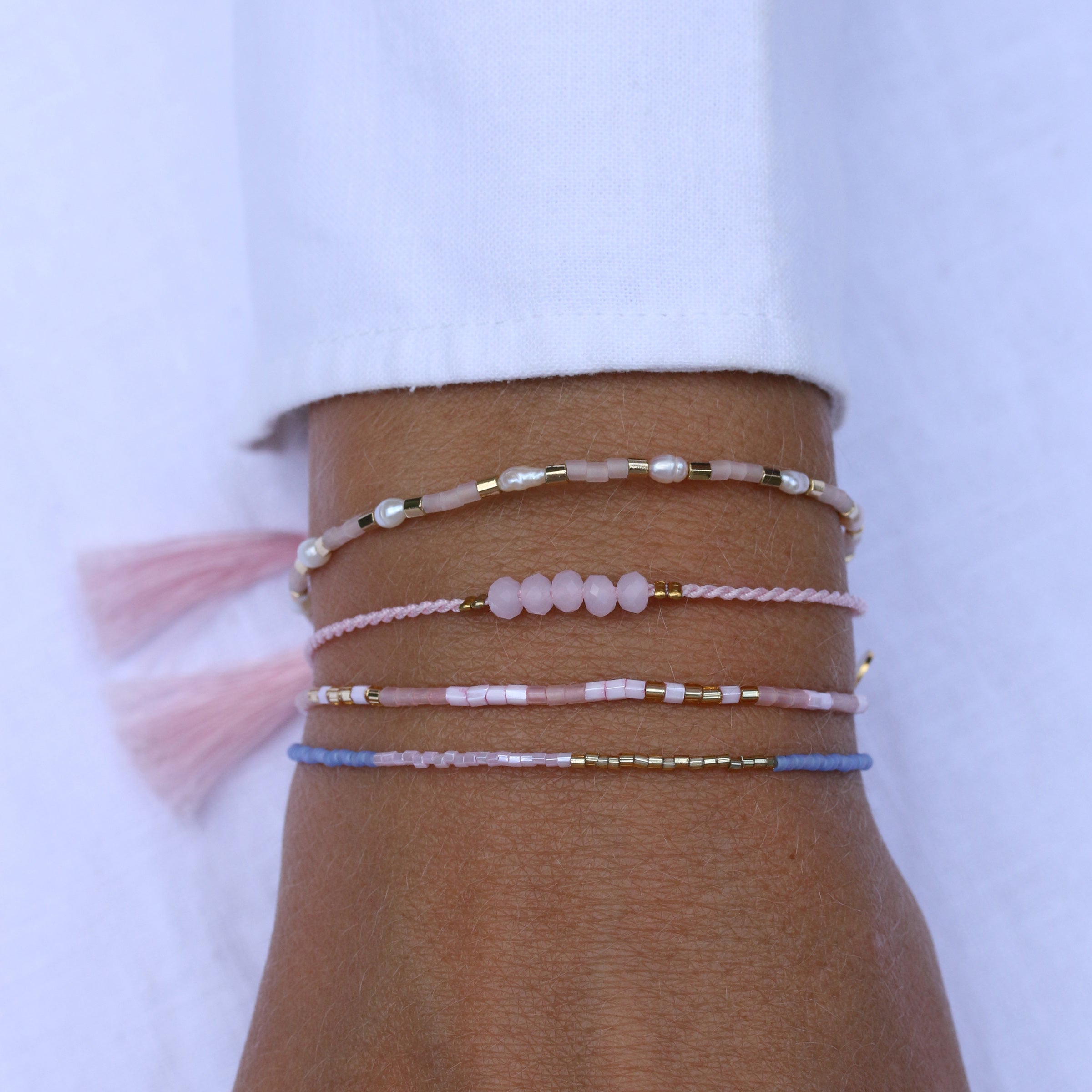 Be Blush strong> bracelet has the makings of a favorite piece in your jewelry box. It consists of tiny glass beads the Japanese company Matsuno and is closed with a carbine. It is about 15 cm long and can be extended to cm second