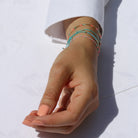 A tiny treasure of a bracelet. One line of the smallest hexagon glass beads embraces your wrist closing with a dainty carabiner, extension chain and logo tag. It is about 17 cm long and can be extended up to 2 cm. All metal pieces are 24k gold dipped made in Germany and Italy.