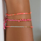 embrace your wrist. Scattered gold beads provide an elegant finish.
