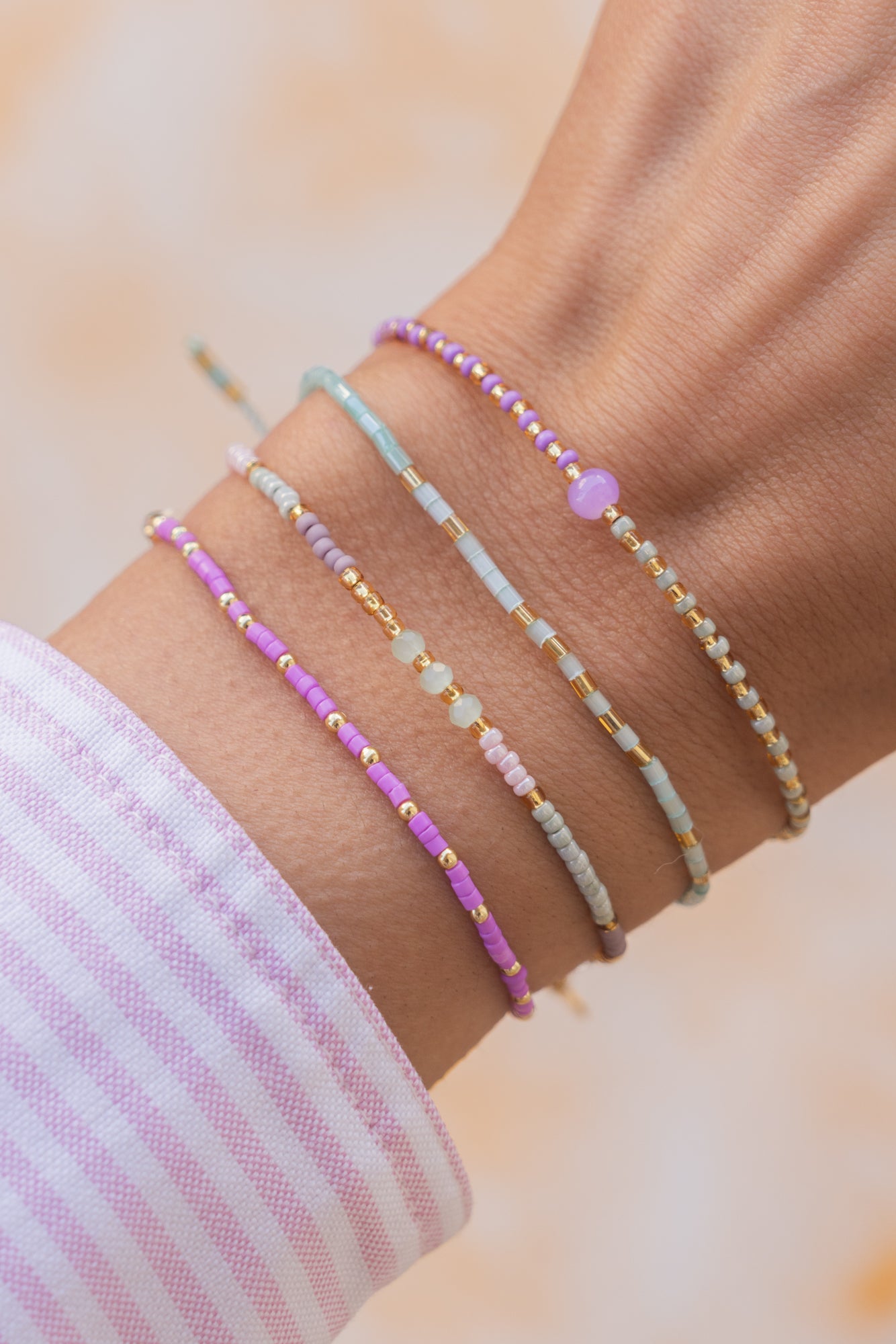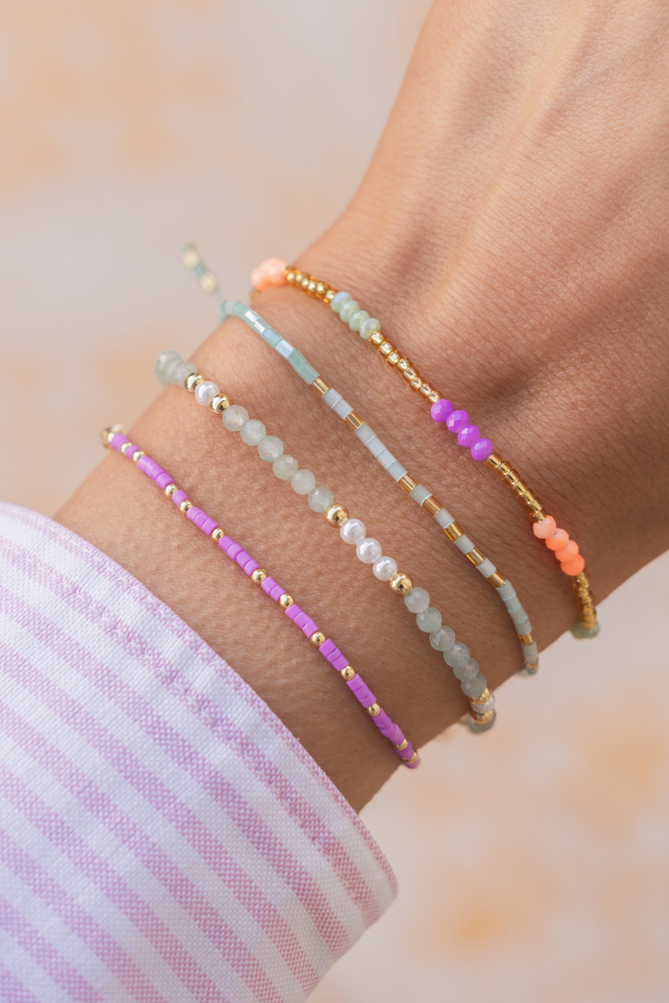 This also applies to the gold and silver beads. These are coated on the inside, so they will become duller over time due to wear on the jewelry wire. Please follow our care instructions below to ensure you can enjoy your jewelry for a long time.