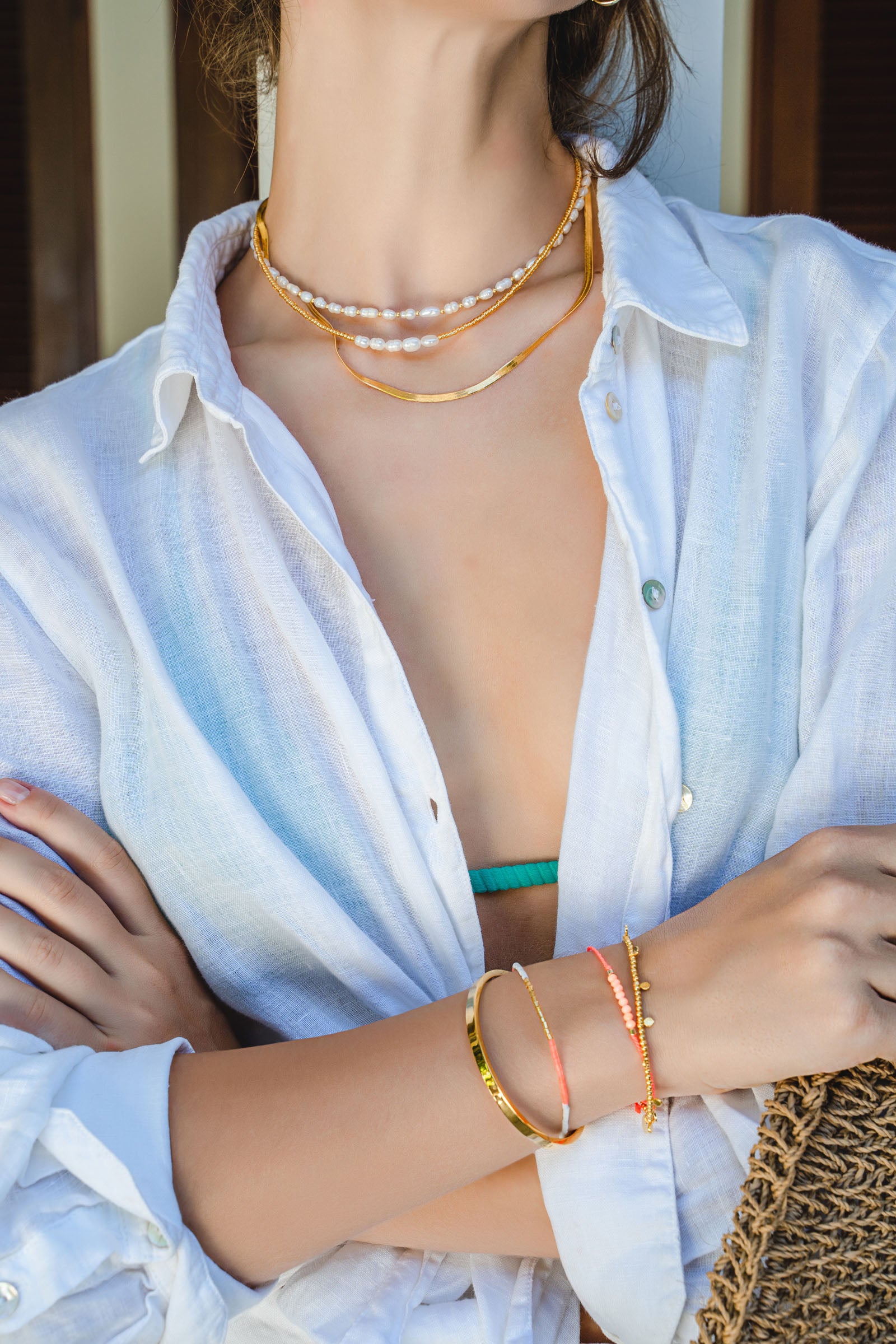 This also applies to the gold and silver beads. These are coated on the inside, so they will become duller over time due to wear on the jewelry wire. Please follow our care instructions below to ensure you can enjoy your jewelry for a long time.