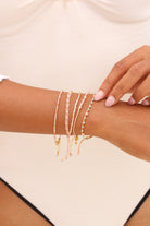 The bracelet is 16 cm long and can be extended by 2 cm. The semi-precious stones have a diameter of 2 mm. All metal parts are made of 18k gold-plated or silver-rhodium-plated brass.