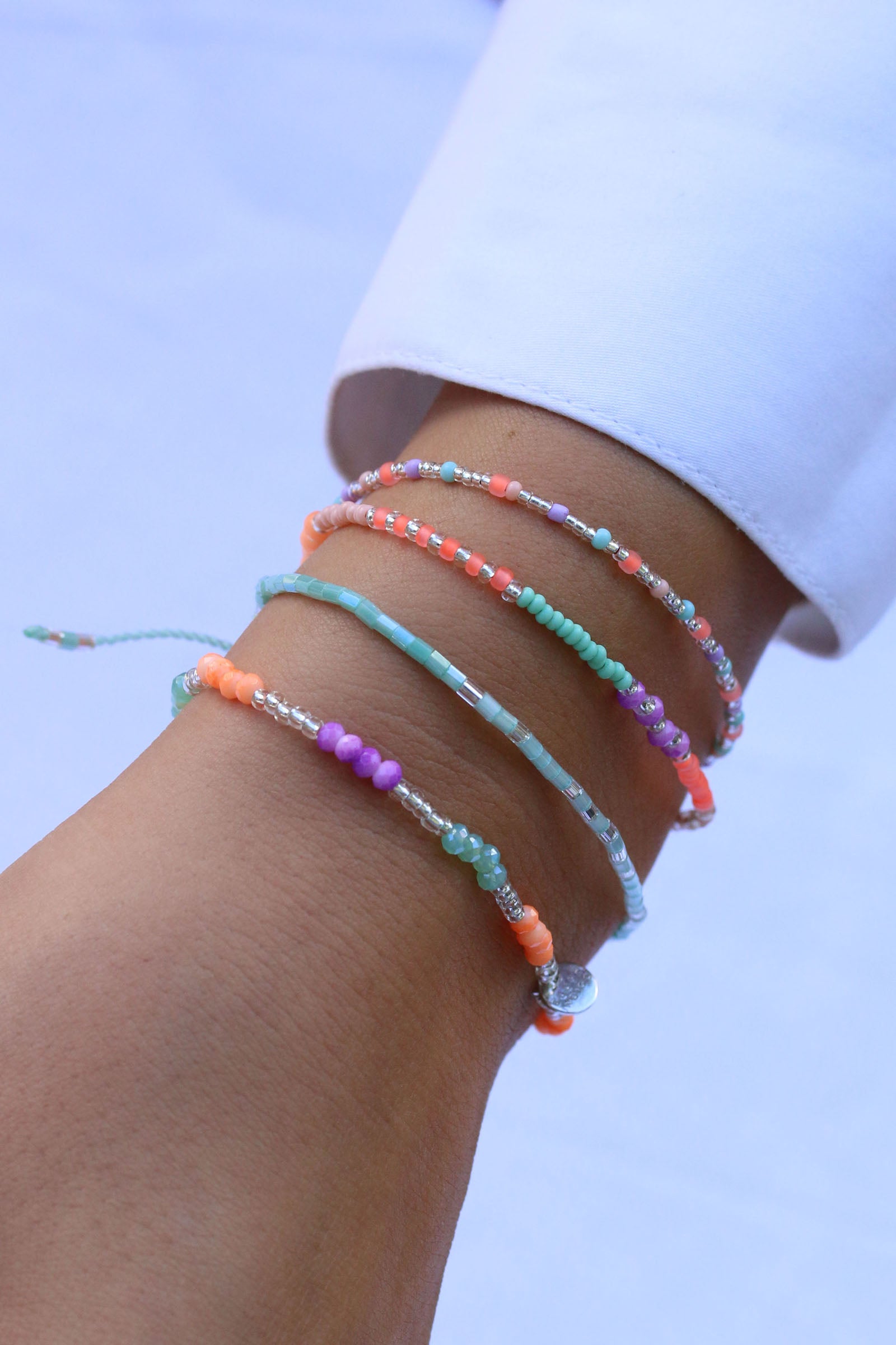 Our elastic bracelet Fresh Lily from the Lotus series delights with silver beads and colorful highlights in Neon Coral, Lilac and Mint Green. In our assortment you will also find the matching Fresh Lily necklace.