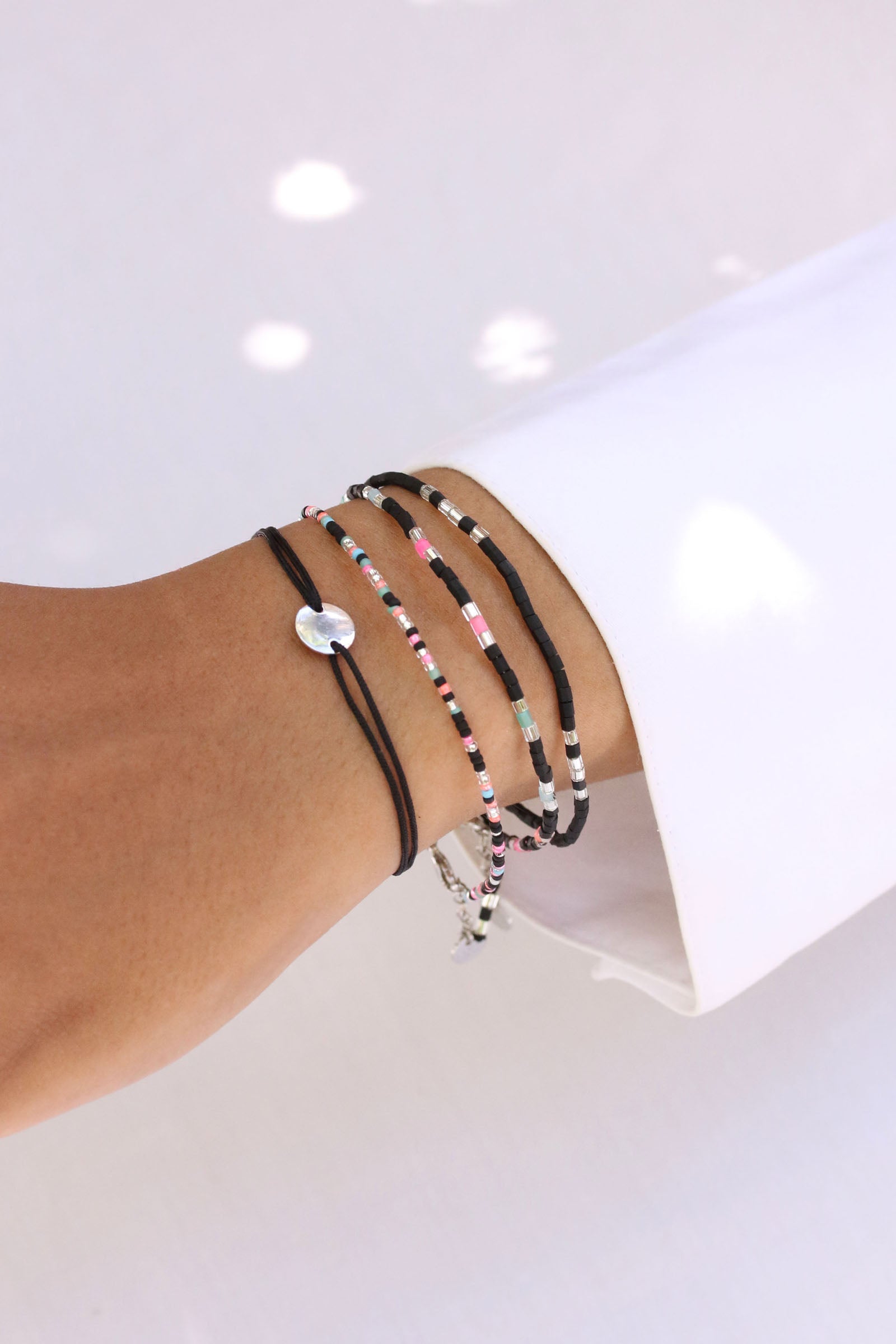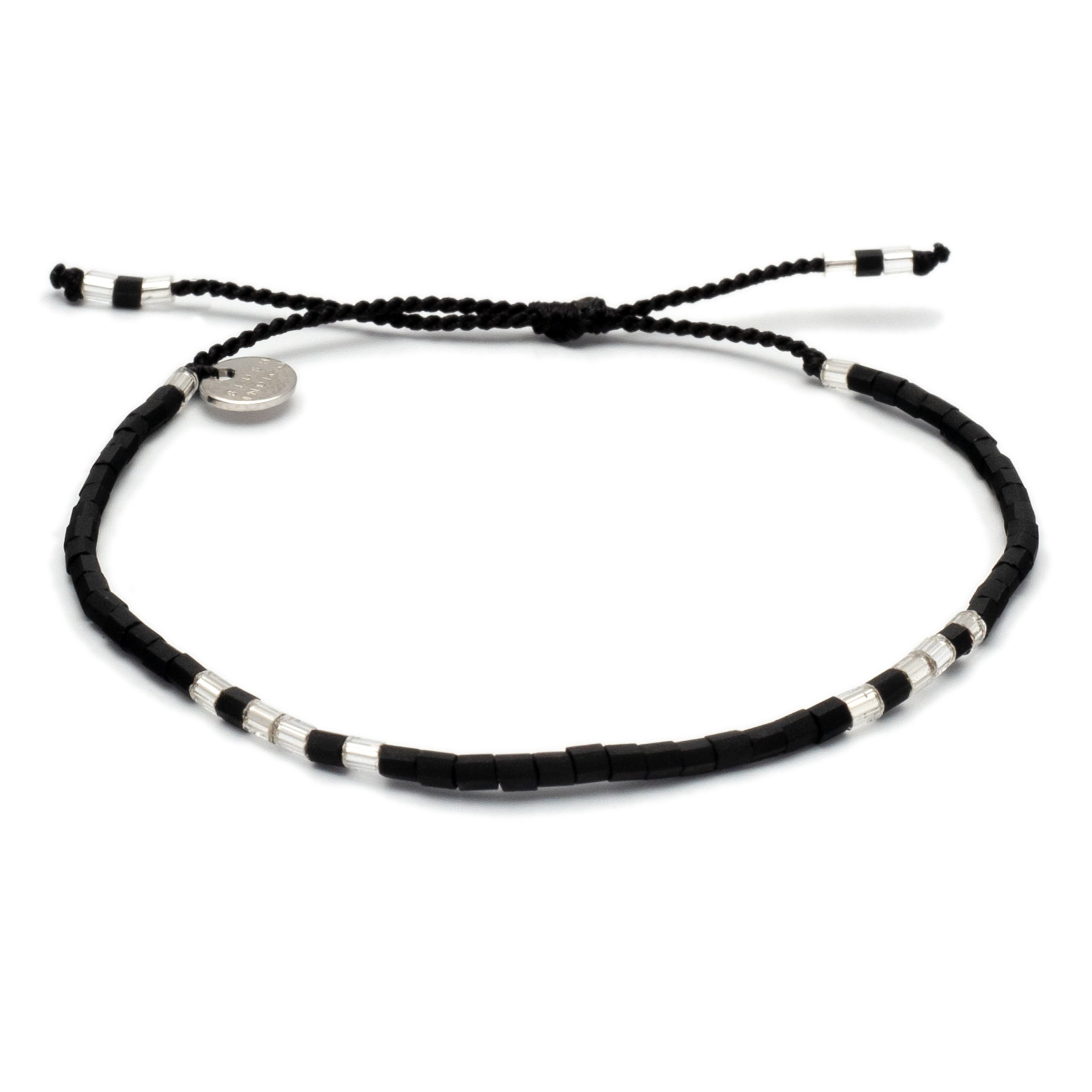 The monochrome bracelets of our Frosted Edition are particularly suitable for combining with other wrist candy. This one is made of Frosted Black beads with silver highlights for an elegant finish.