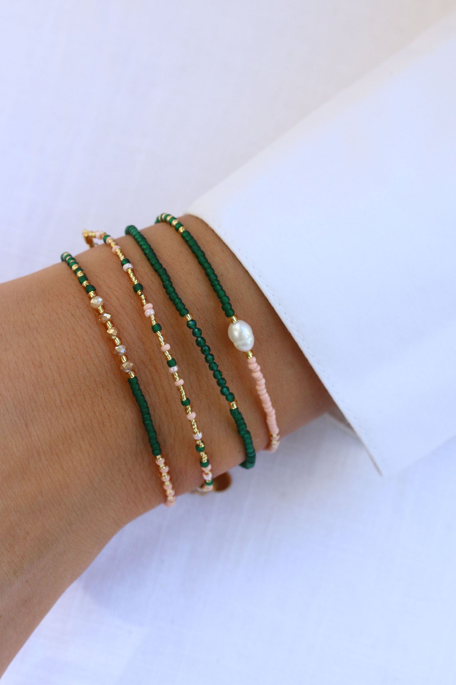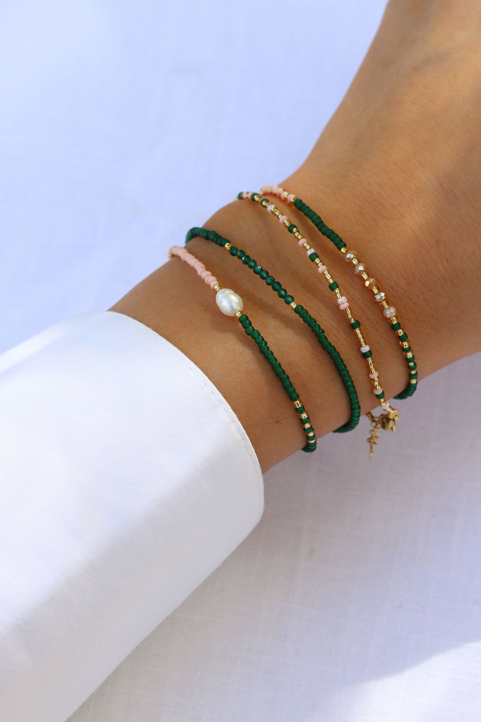 This also applies to the gold and silver beads. These are coated on the inside, so they will become duller over time due to wear on the jewelry wire. Please follow our care instructions below to ensure you can enjoy your jewelry for a long time.
