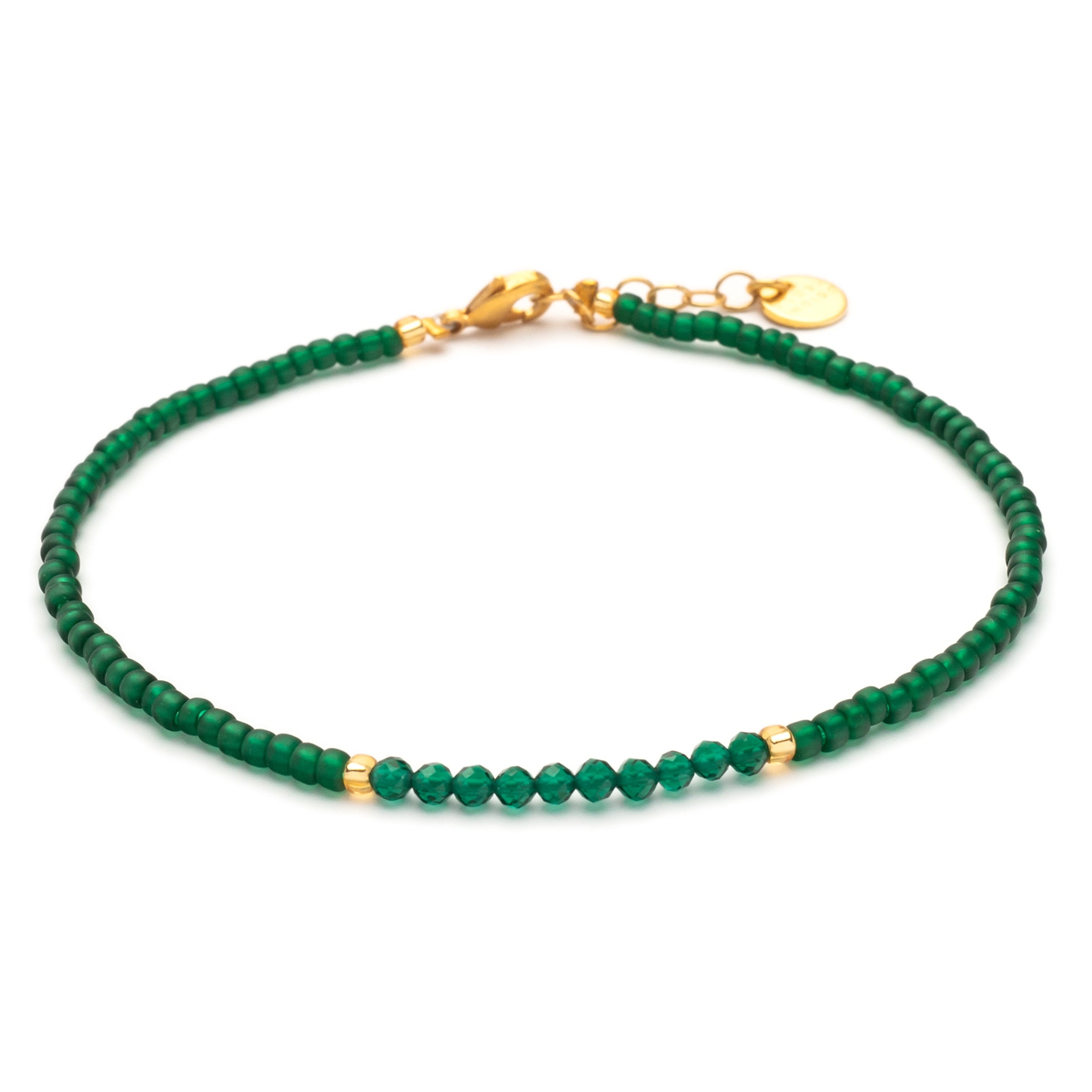 The bracelet is 17 cm long and can be extended by 2 cm. All metal parts used are made of 24k gold-plated or silver-rhodium-plated brass and originate from Germany and Italy.