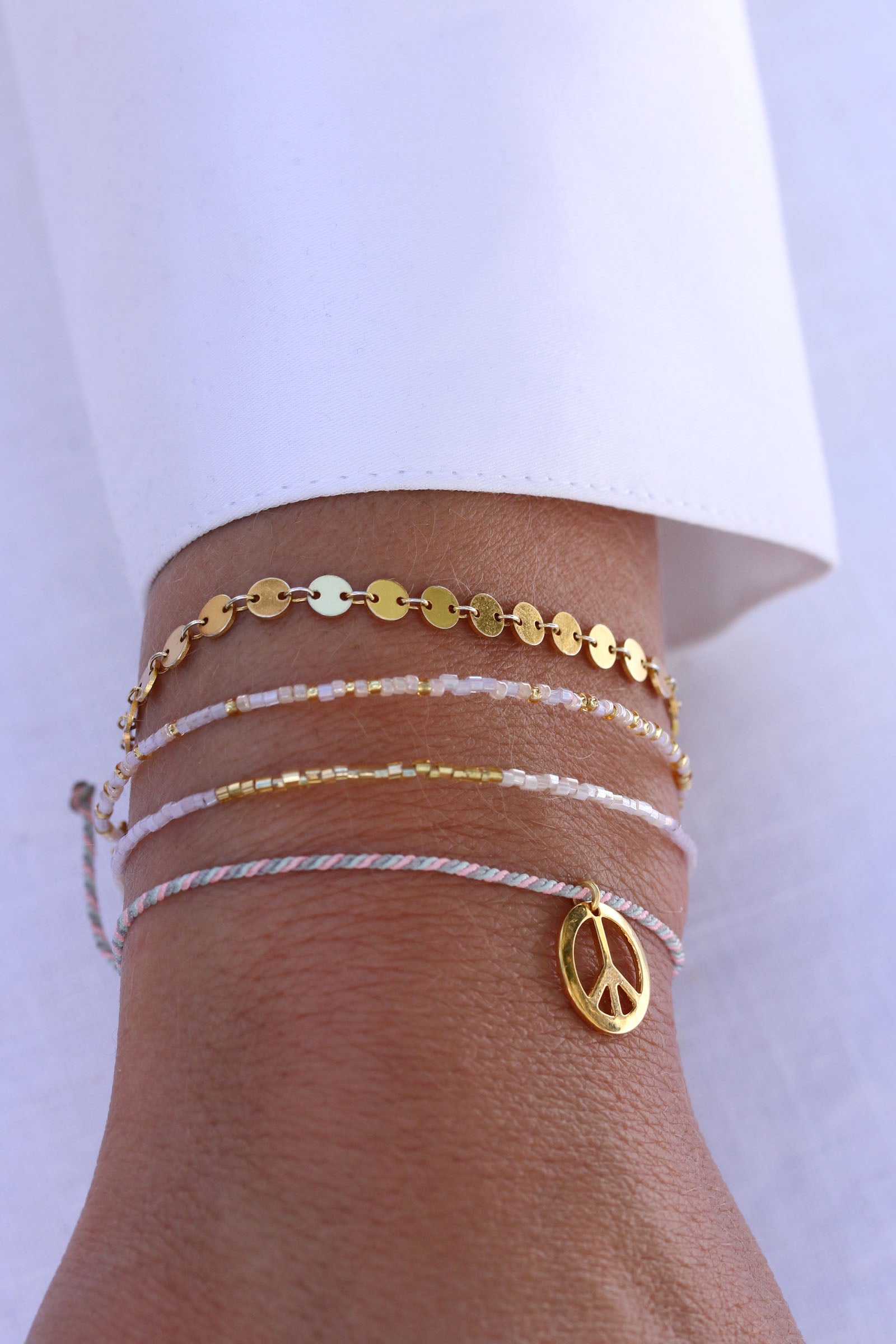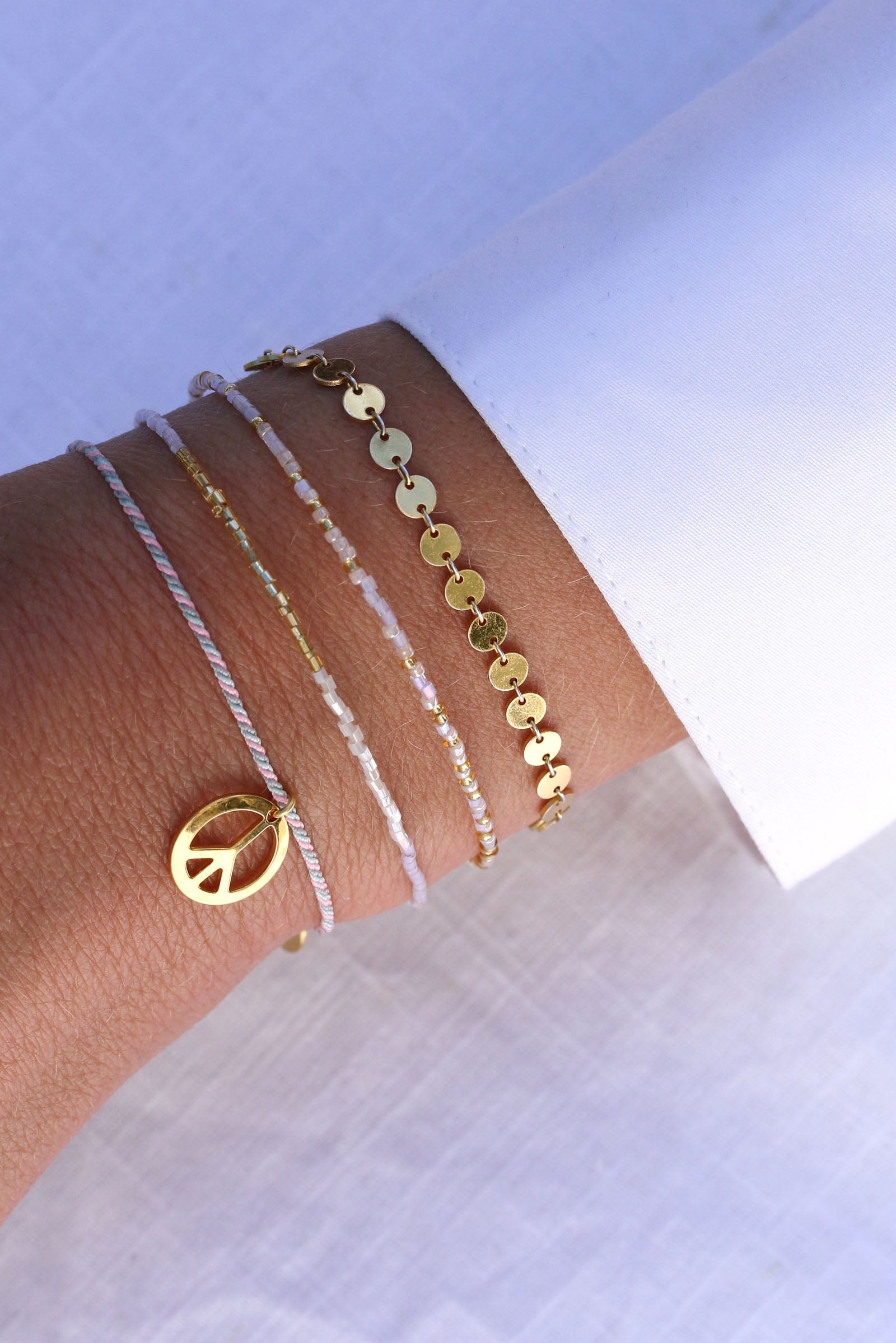 The Rialto bracelet embraces your wrist with countless gold disks made from 925 silver. You can enjoy it on its own or add colourful accents in combination with our beaded wristcandy.