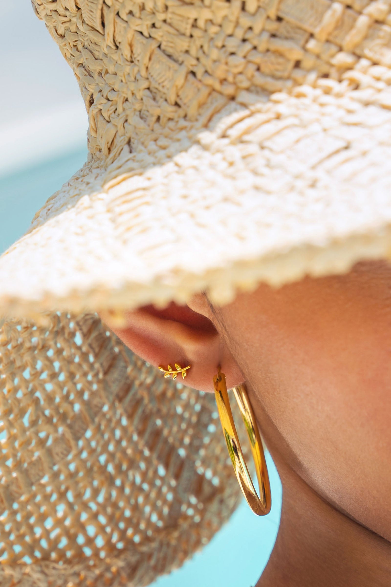All earrings and hoops are made of 18k gold-plated 925 sterling silver.