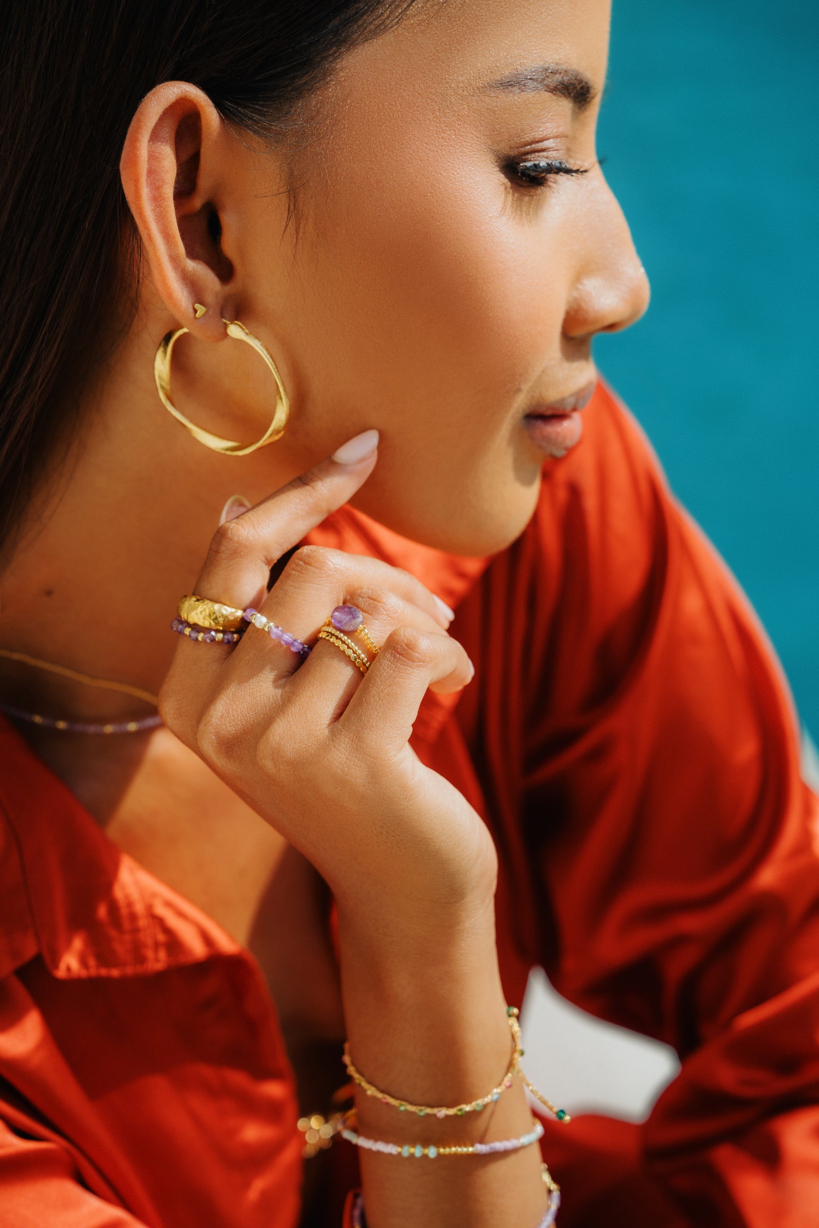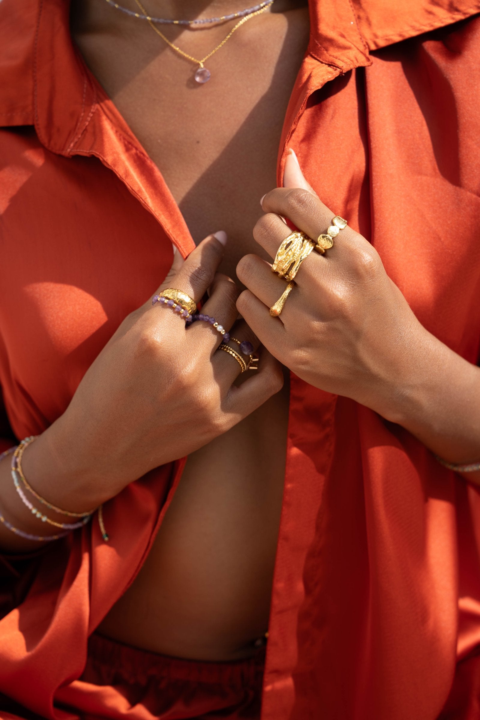 This also applies to the gold and silver beads. These are coated on the inside, so they will become duller over time due to wear on the jewelry wire. Please follow our care instructions below to ensure you can enjoy your jewelry for a long time.