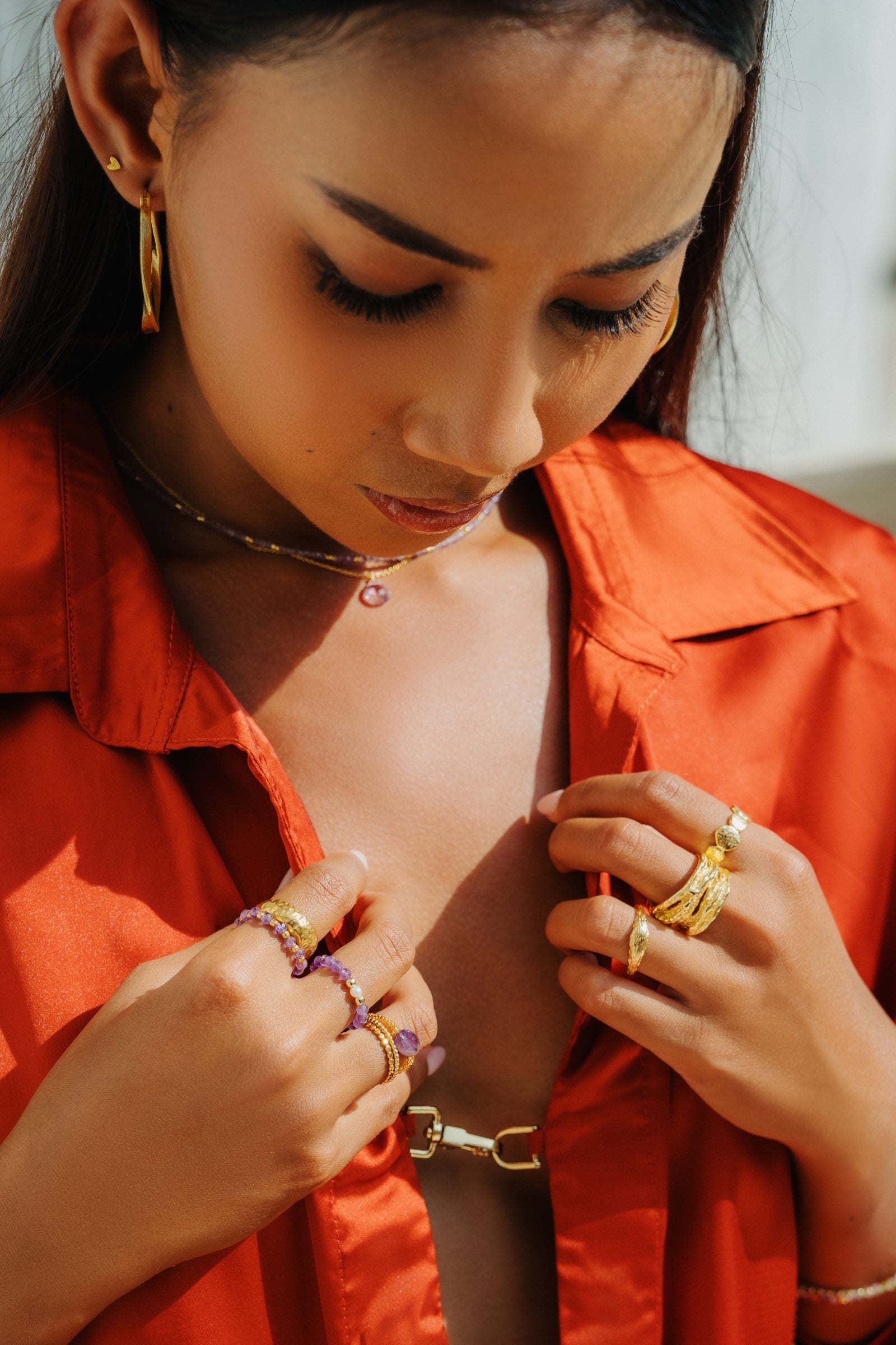 Our jewelry is high-quality gold-plated, silver-plated, or fashion jewelry. The metal components used are sourced from Germany and Italy and imported to Bali. Our gold plating on the carabiners, logo plate, and extension chain is made of 24-karat gold. However, this is a layer that can wear off depending on wear.