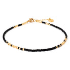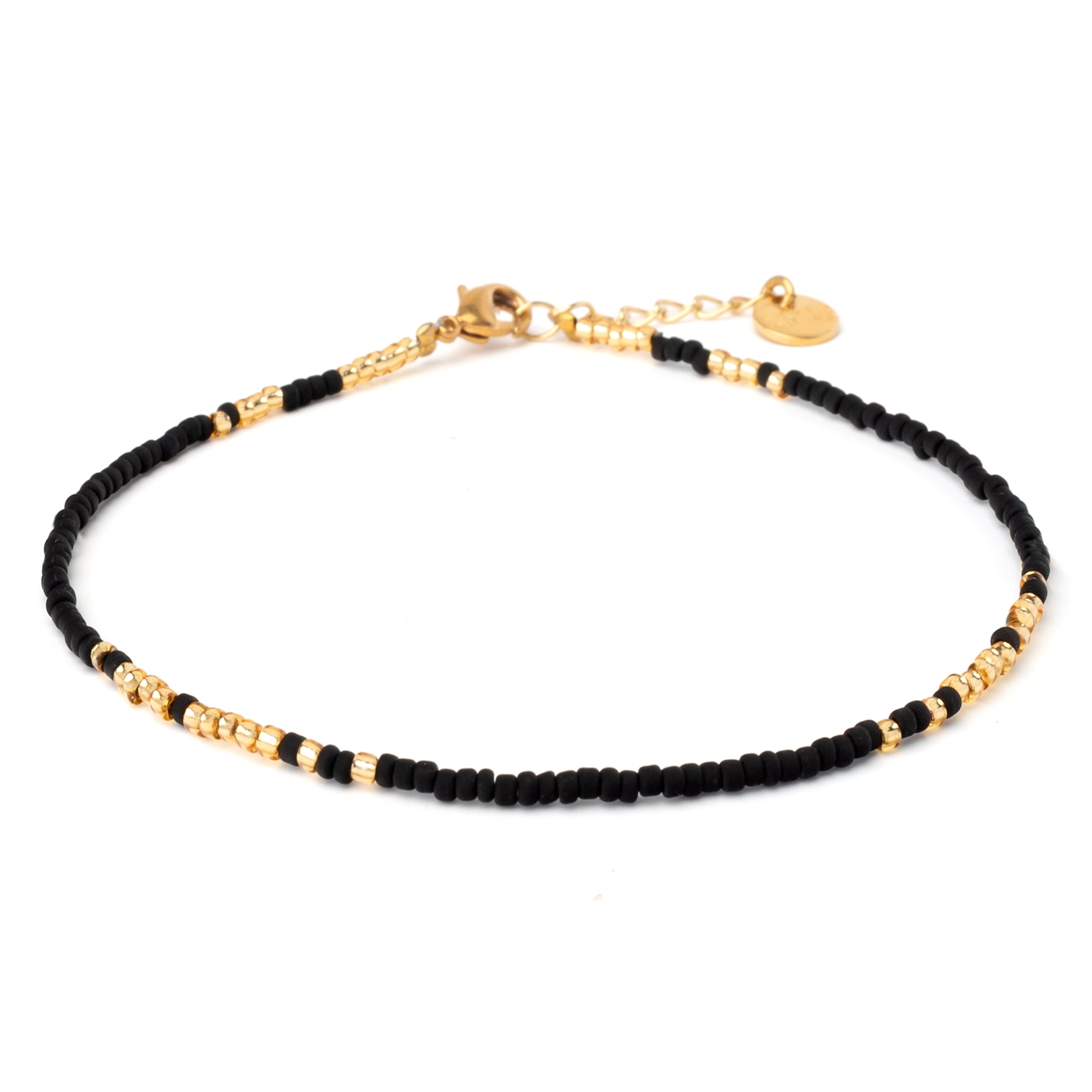 Winzige Glasperlen in sattem Schwarz, durchbrochen von feinen goldenen Highlights – dieses Armband ist der Inbegriff von subtiler Eleganz. Perfekt zum Layern oder als stilvolles Solo-Piece.