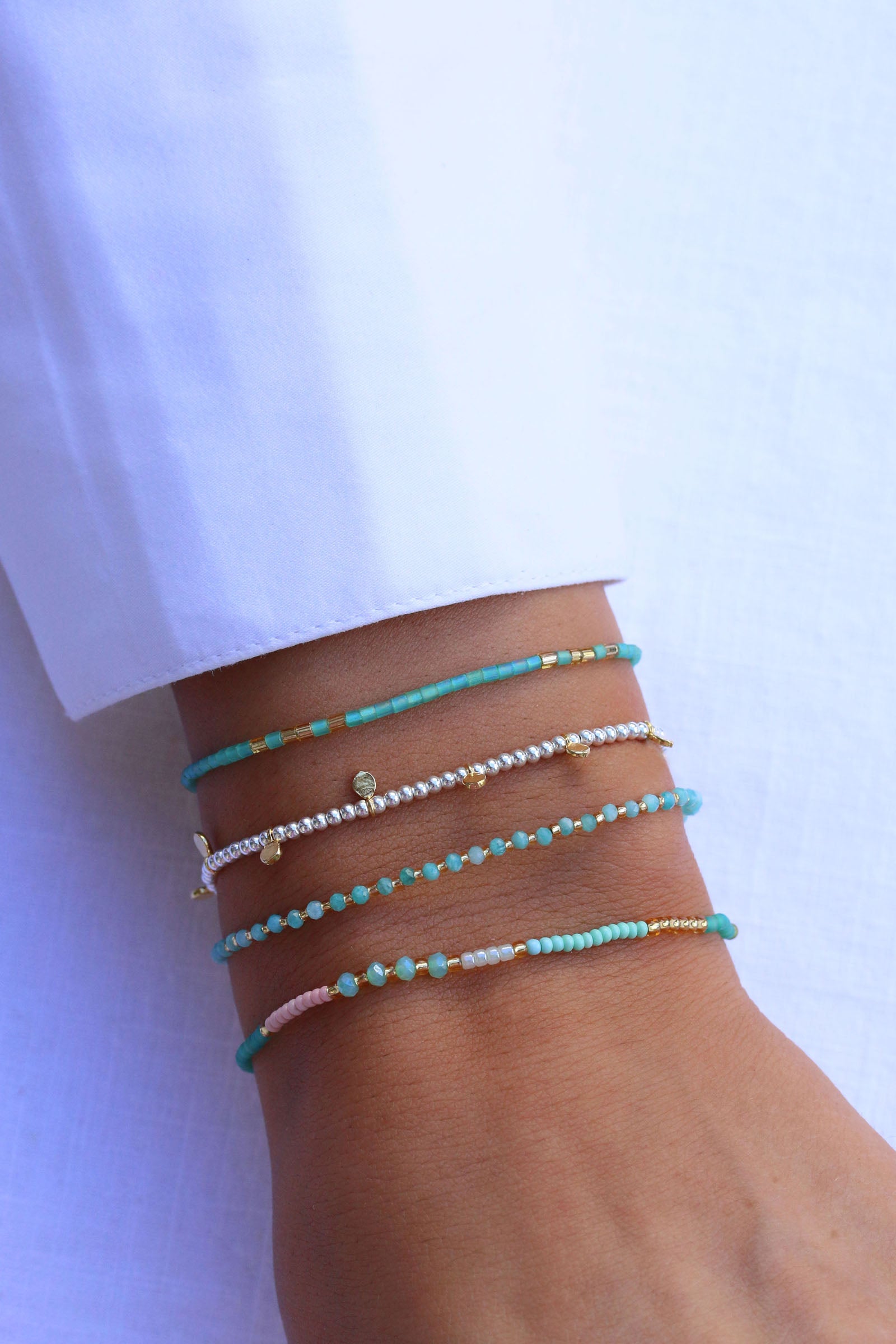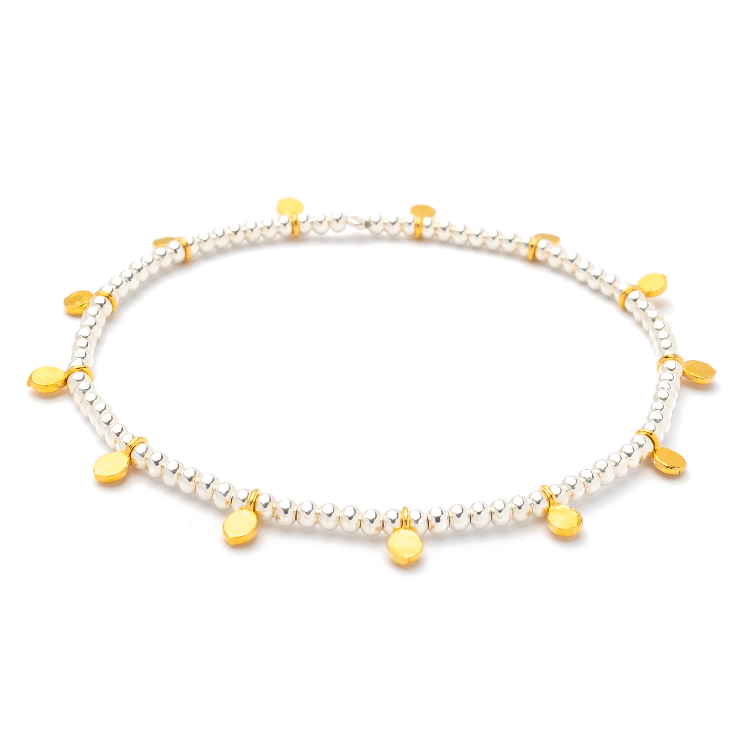 Unser elastisches Armband Corinth gehört zu unseren absoluten Laden-Lieblingen und ist jetzt endlich online erhältlich. Die Perlen und Coins aus 925 Silber umspielen lässig das Handgelenk und passen zu jeder farbenfrohen Armband-Kombi. Das Modell in bicolor mit Silberperlen und vergoldeten Coins ist ein besonders aufregendes Schmuckstück.