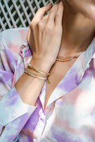 Das Armband ist 16 cm lang und kann um 2 cm verlängert werden. Die Glassteine haben einen Durchmesser von 2 mm. Alle verwendeten Metallteile sind aus 18k vergoldeten bzw. versilbert-rhodinierten Messing.