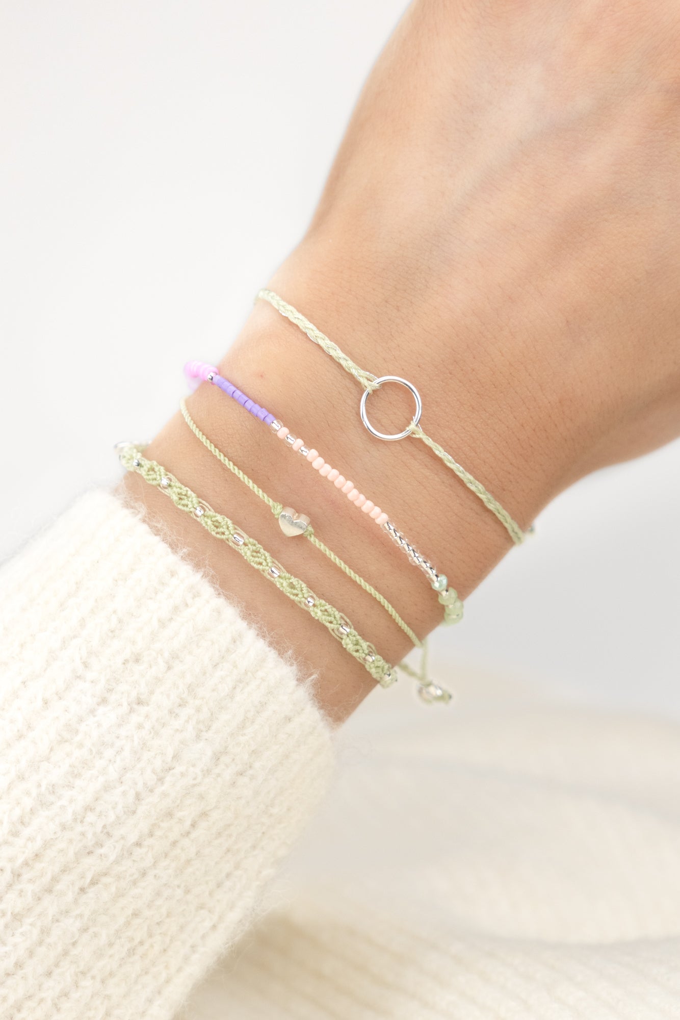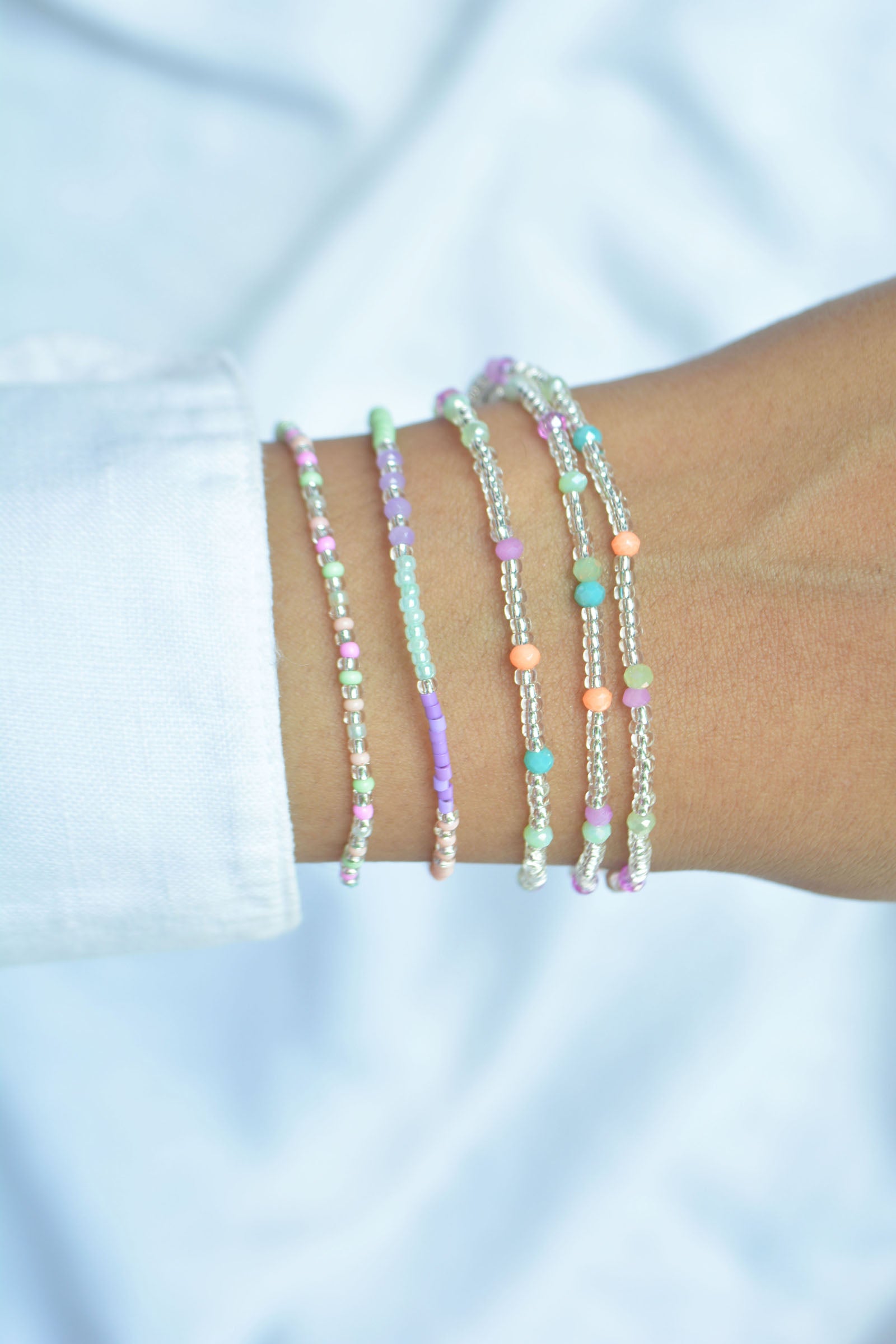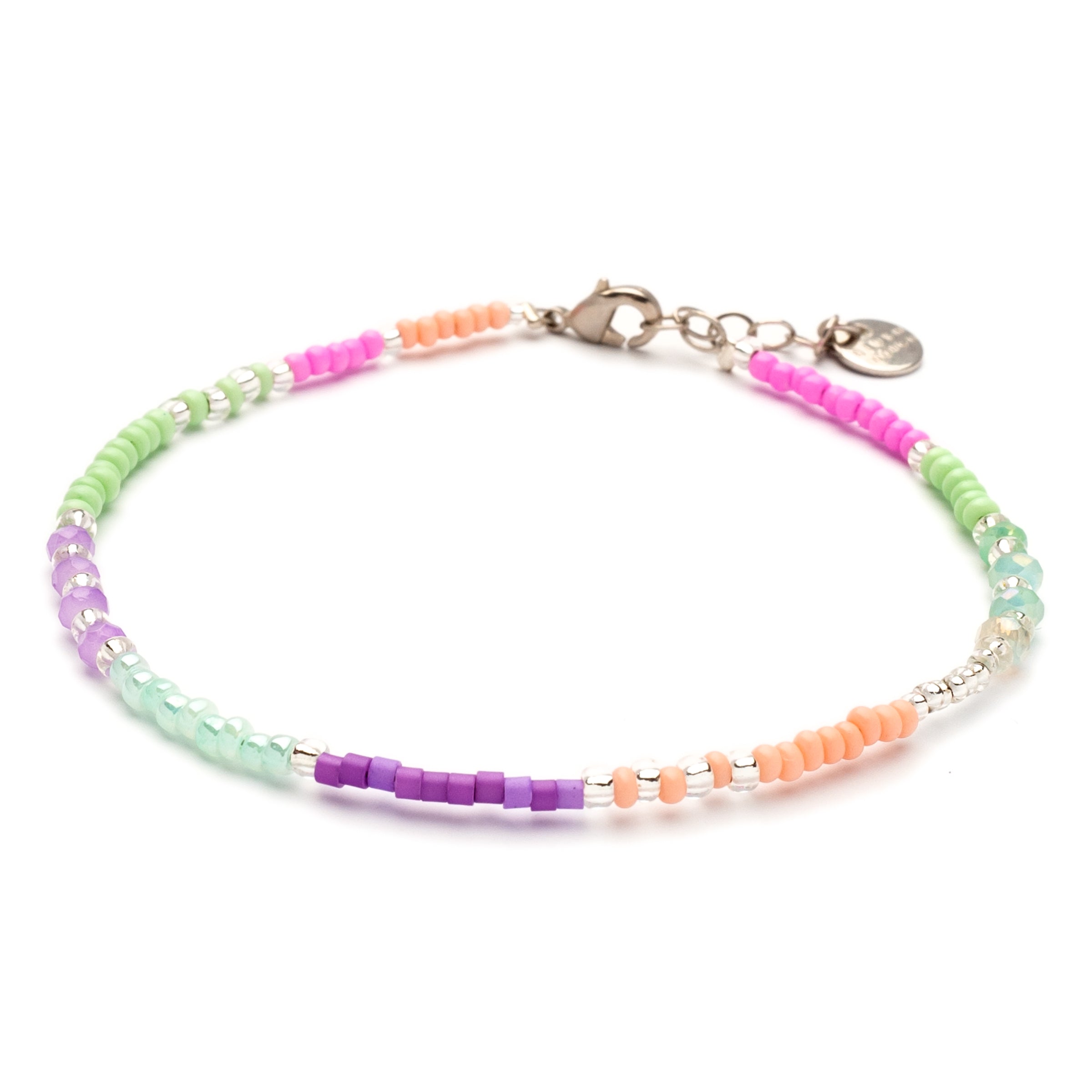 Ciao Corfu! Die kleine griechische Insel ist für dichte Vegetation und farbenprächtige Sonnenuntergänge bekannt. Klar, dass wir unser silbernes Corfu-Armband in Mintgrün und Flieder hüllen. Facettierten Glaskristalle in Mintgrün und Violett setzen elegante Akzente. Die Corfu-Serie umfasst weitere Armbändchen, Fußkettchen und eine Halskette.