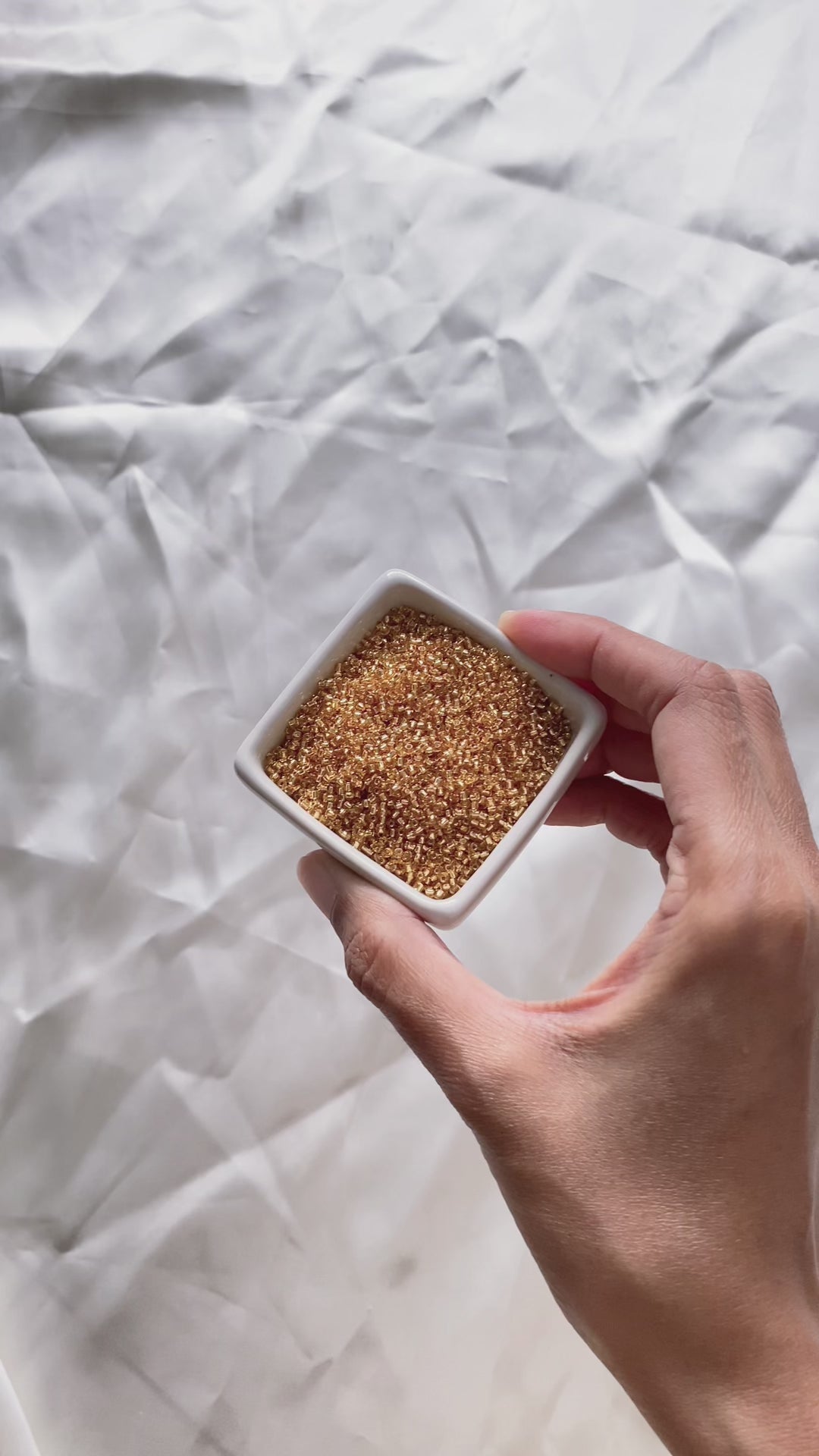 Alle verwendeten Perlen stammen aus Balis bestem Perlenladen, der ausschließlich Matsuno Glasperlen aus Japan vertreibt. Die verwendeten Metallteile sind aus 24k vergoldeten bzw. versilbert-rhodinierten Messing und stammen aus Deutschland und Italien.