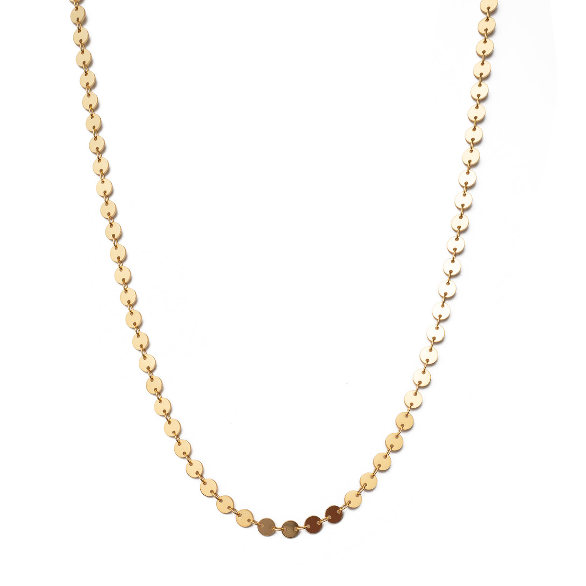Die Plättchen haben einen Durchmesser von 4 mm. Die Kette aus 18k vergoldetem 925 Silber ist 40 cm lang und kann um 5 cm verlängert werden. Das passende Armband zur Kette gibt es hier.