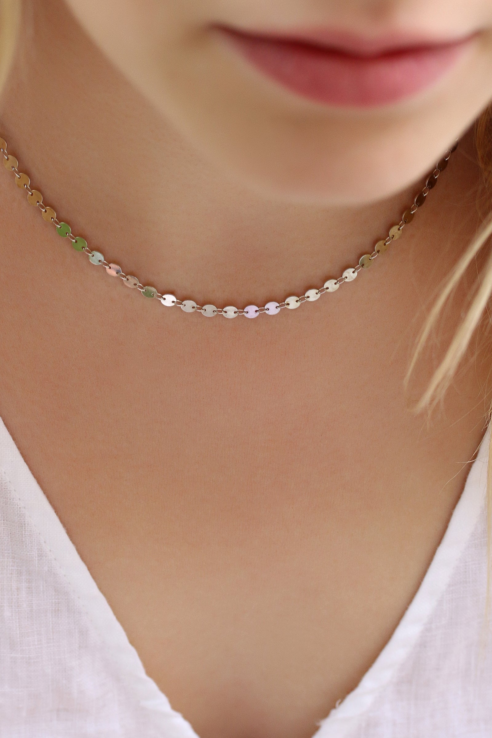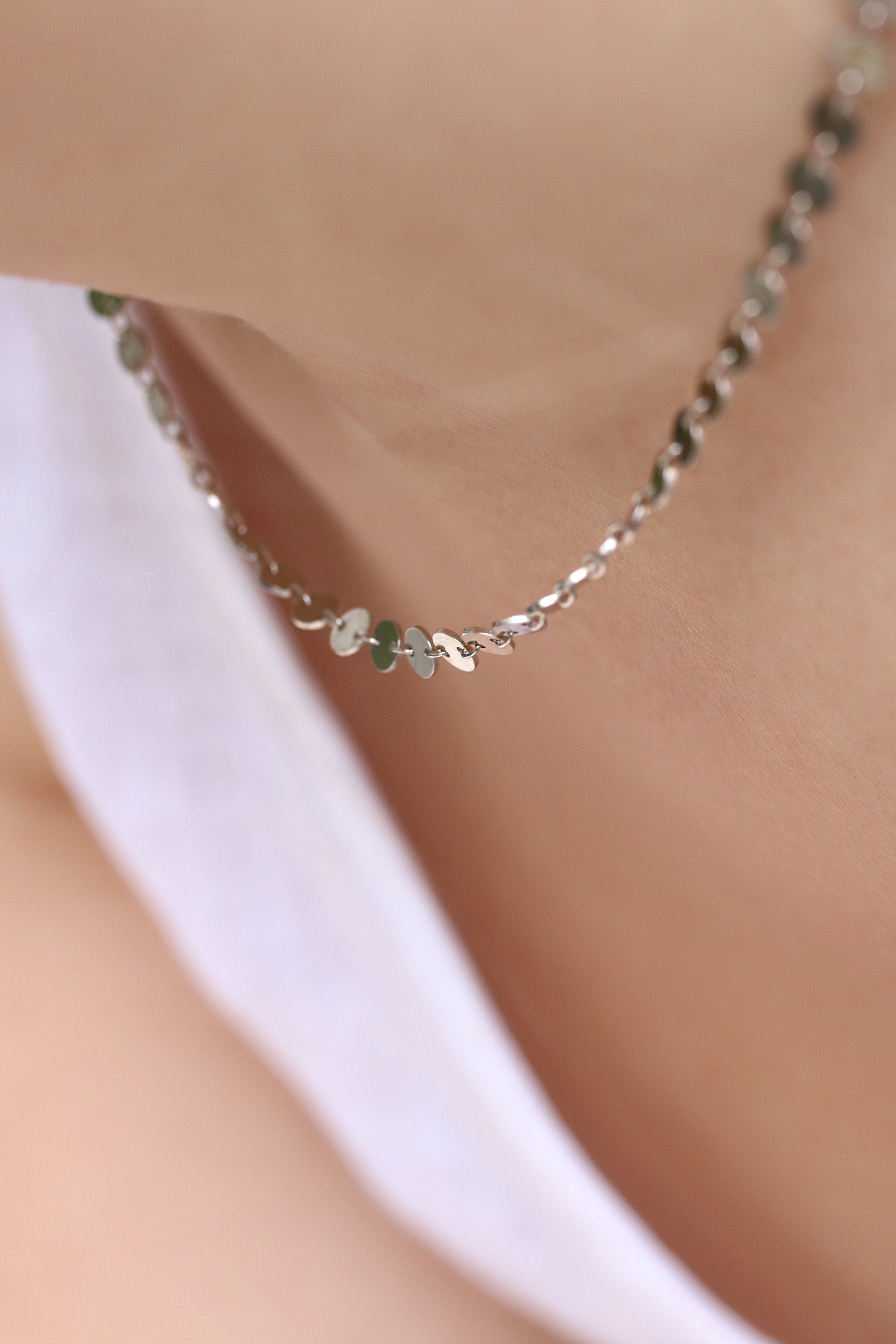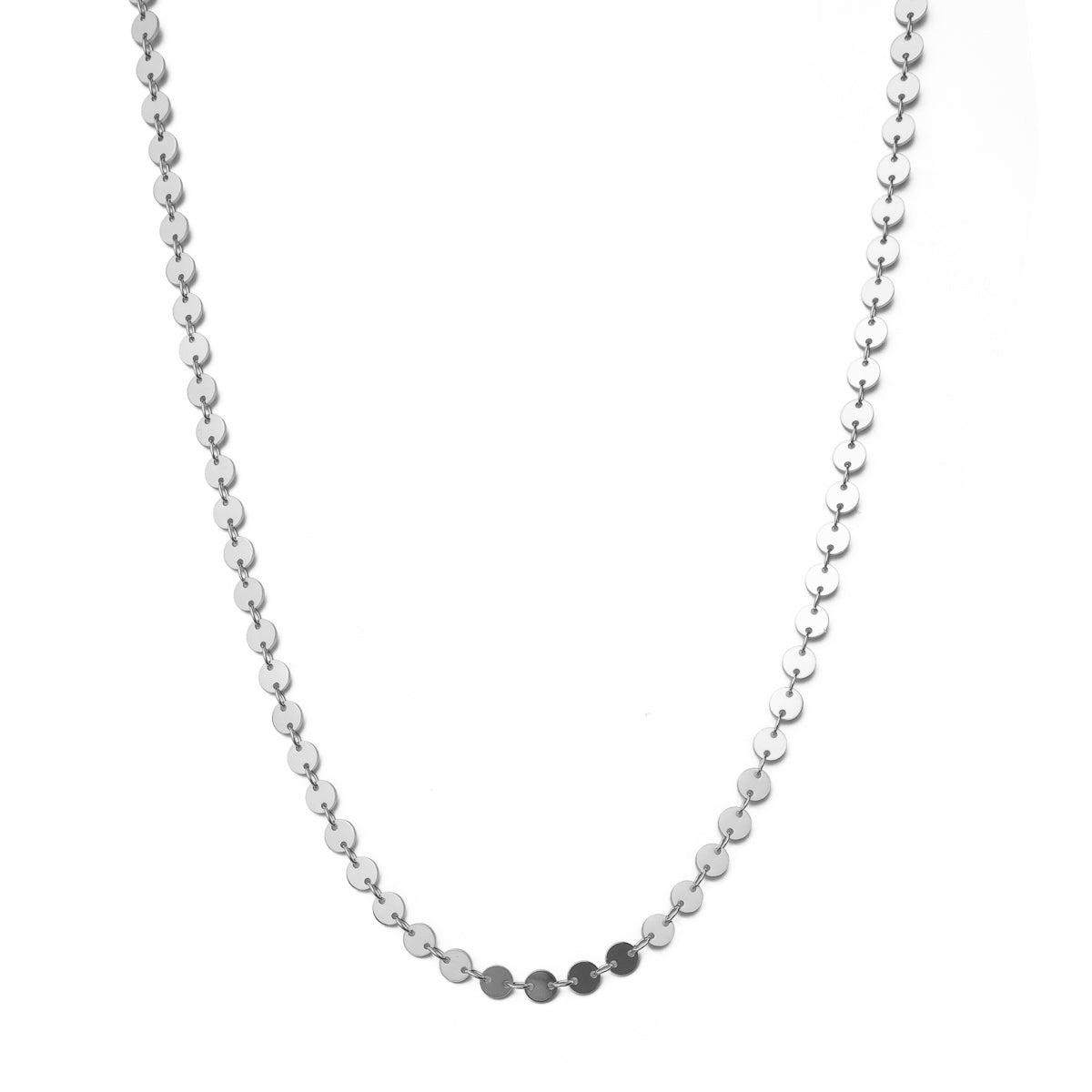 Die Plättchen haben einen Durchmesser von 4 mm. Die Kette aus 925 Silber ist 40 cm lang und kann um 5 cm verlängert werden. Das passende Armband zur Kette gibt es hier.