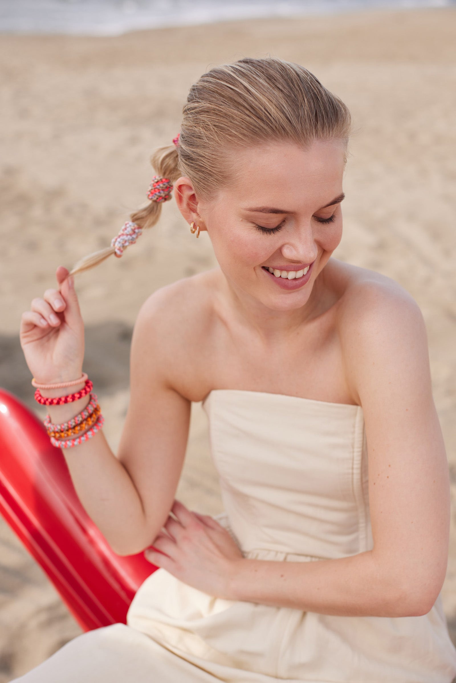 Das KKNEKKI Haargummi stammt aus dem norwegischen Hause Bon Dep. Gewebt aus mehr als 60 Polyester-Fäden in einem besonderen Prozess ist es dem KKNEKKI möglich seine Widerstandsfähigkeit im Laufe der Zeit zu bewahren und gleichzeitig extrem weich und sanft zu jeder Haarstruktur zu sein. Außerdem gibt es kein Verblassen der Farben beim Kontakt mit (Salz)wasser.
