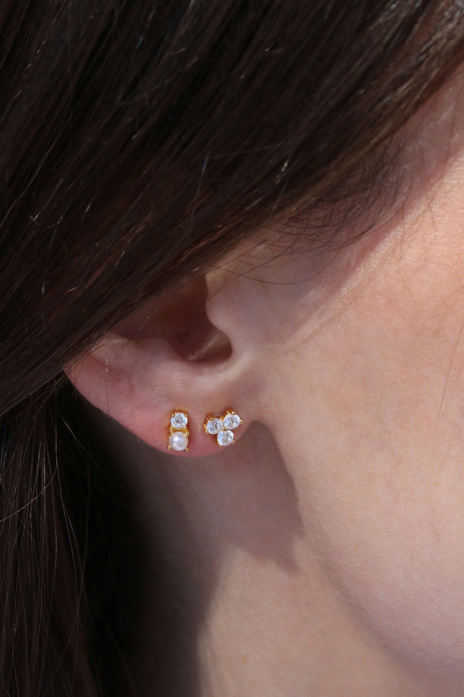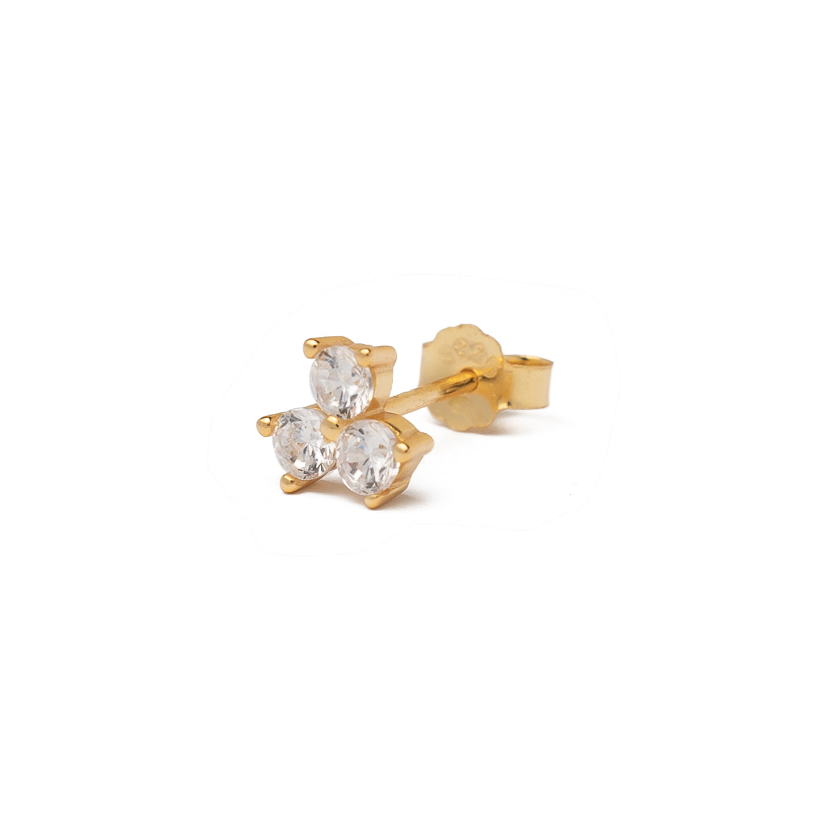 Zart und zauberhaft - drei Zirkonia bilden eine 6x6 mm funkelnde Blüte auf einem 18K vergoldeten Ohrstecker und machen deinen Diamond Day perfekt.
