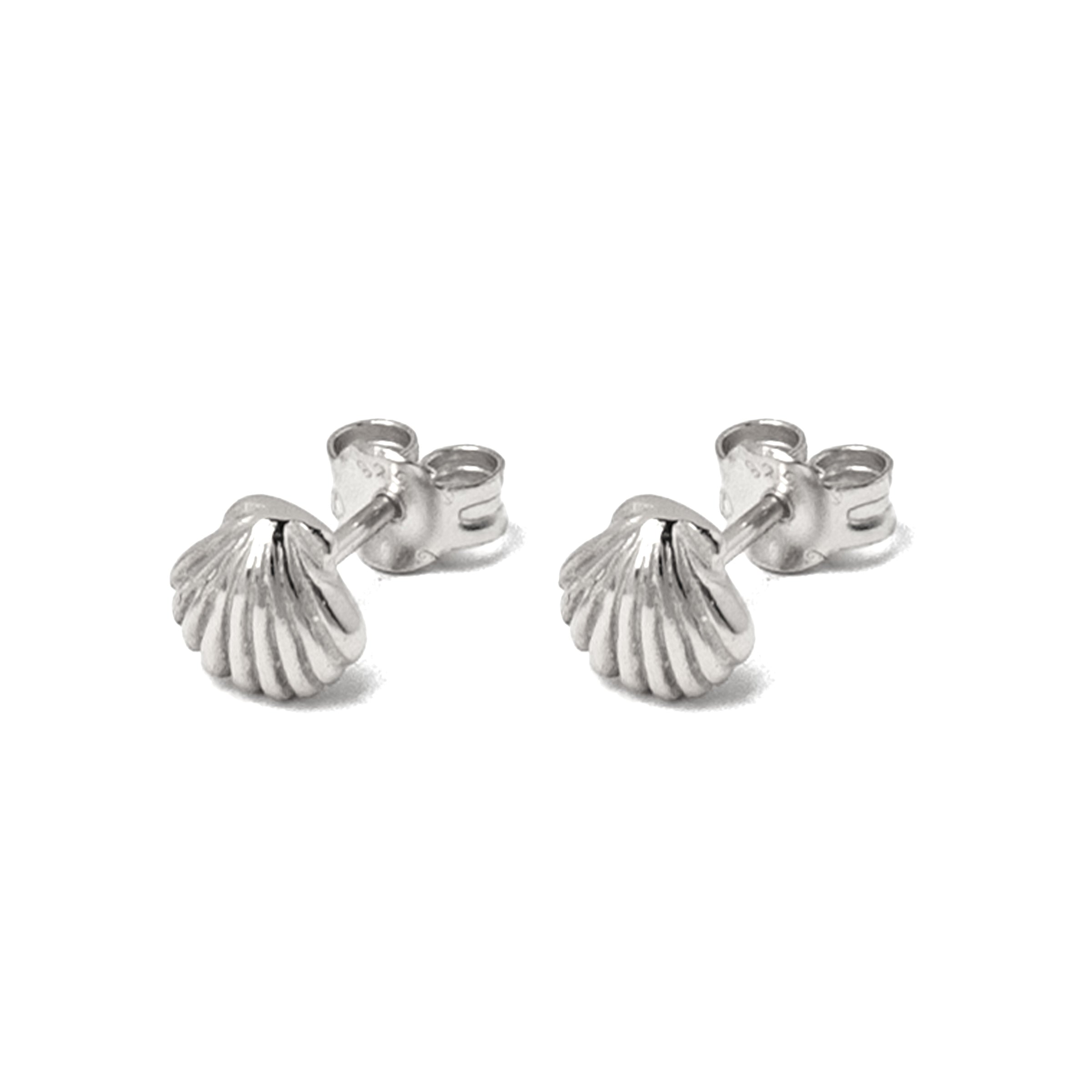Die Muschel-Ohrstecker aus 925 Silber erinnern an ewige Sommer am Strand. Sie messen rund 6x7 mm im Durchmesser.